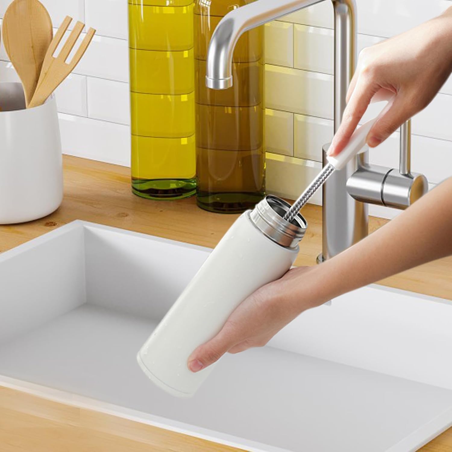 - Efficient Storage: Equipped with a space-saving hanging hook, this brush can be conveniently hung, saving valuable kitchen space. Please note: This brush is only suitable for bottles with a neck opening larger than 4cm (1.6 inches).