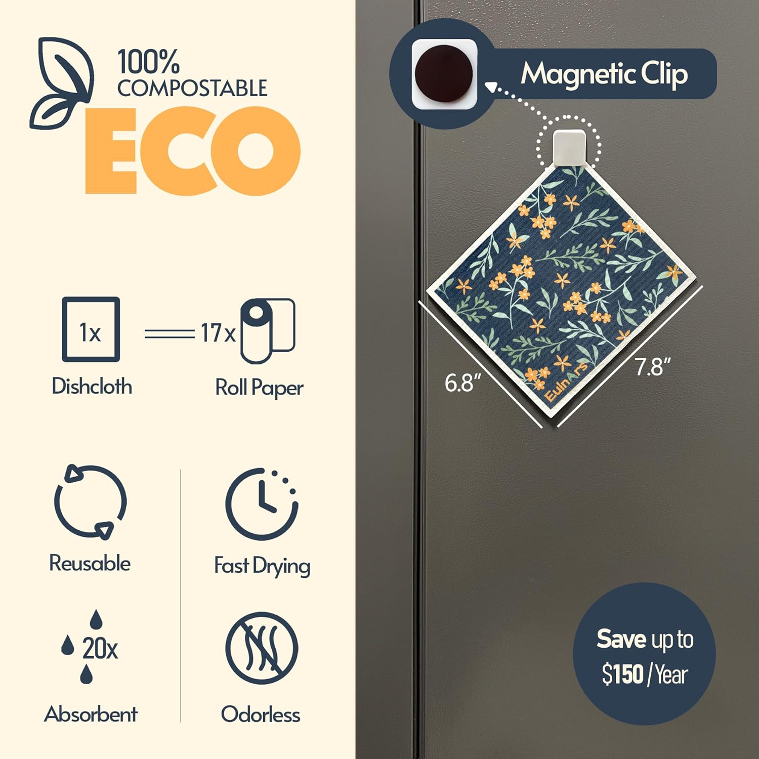- Easy to Clean and Store: Our swedish dish cloths, measuring 7.8 x 6.8 inches, each set comes with 8 dish cloths in 4 styles, along with 2 self-adhesive clips, 1 magnetic clip, and 9 labeling tags. Customize storage for easy access, hanging them on walls, counters, or refrigerators to keep your kitchen organized