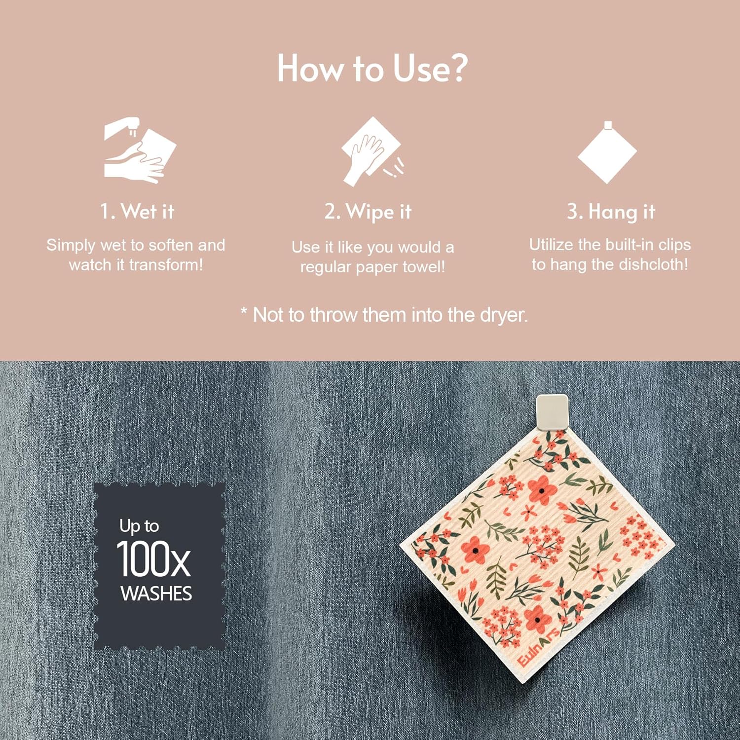 - Washable and Resuable: Tested to be reusable up to 200 times, our swedish dish rags for washing dishes can replace up to 17 rolls of paper towels. Affordable, durable, and easy to care for, they offer a long-lasting alternative to disposable paper towels