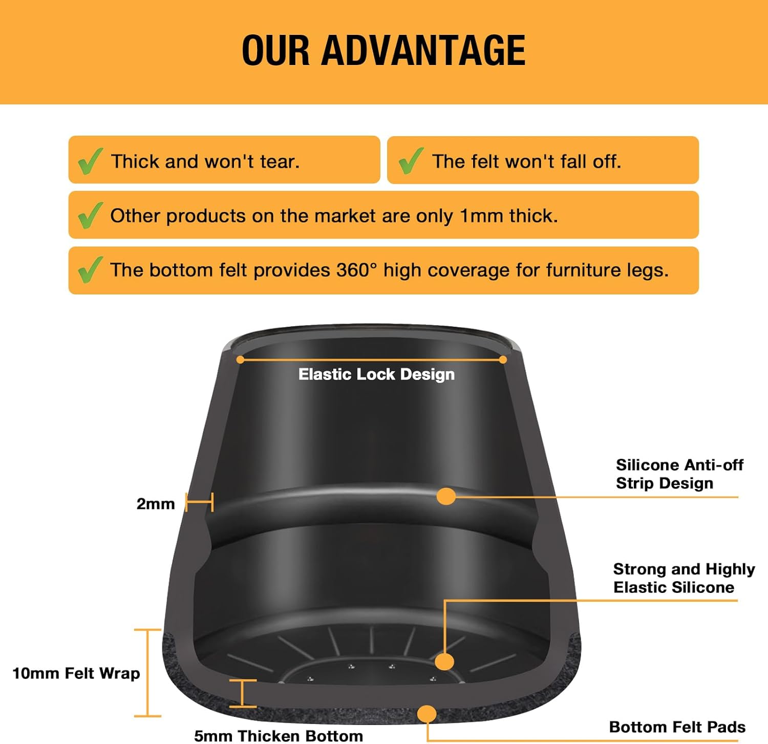 - 【Tip】: Please measure your furniture legs size carefully before ordering.