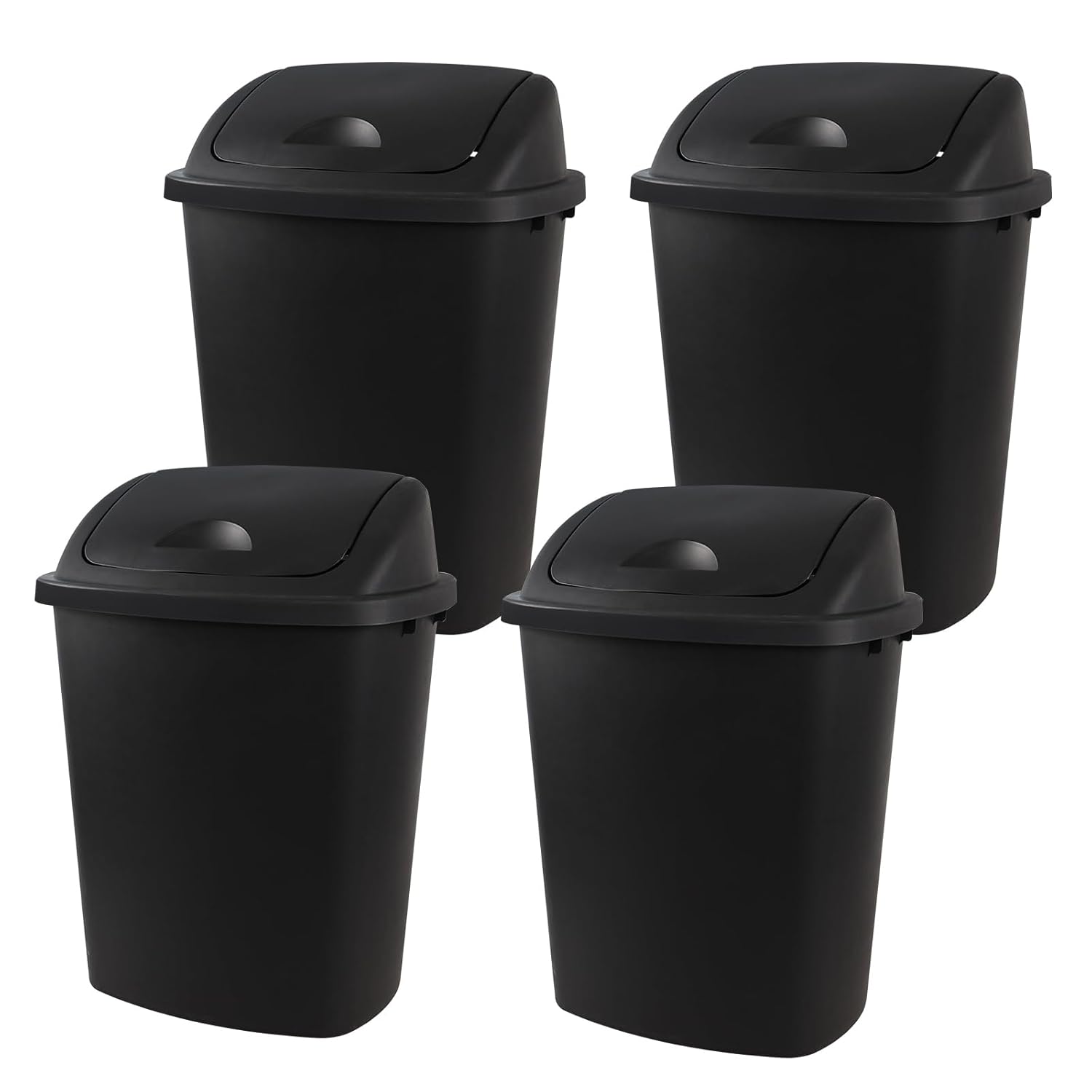 Zopnny 4-Pack 11 Gallon Swing Lid Trash Can, Plastic Swing-Top Garbage Can, Black