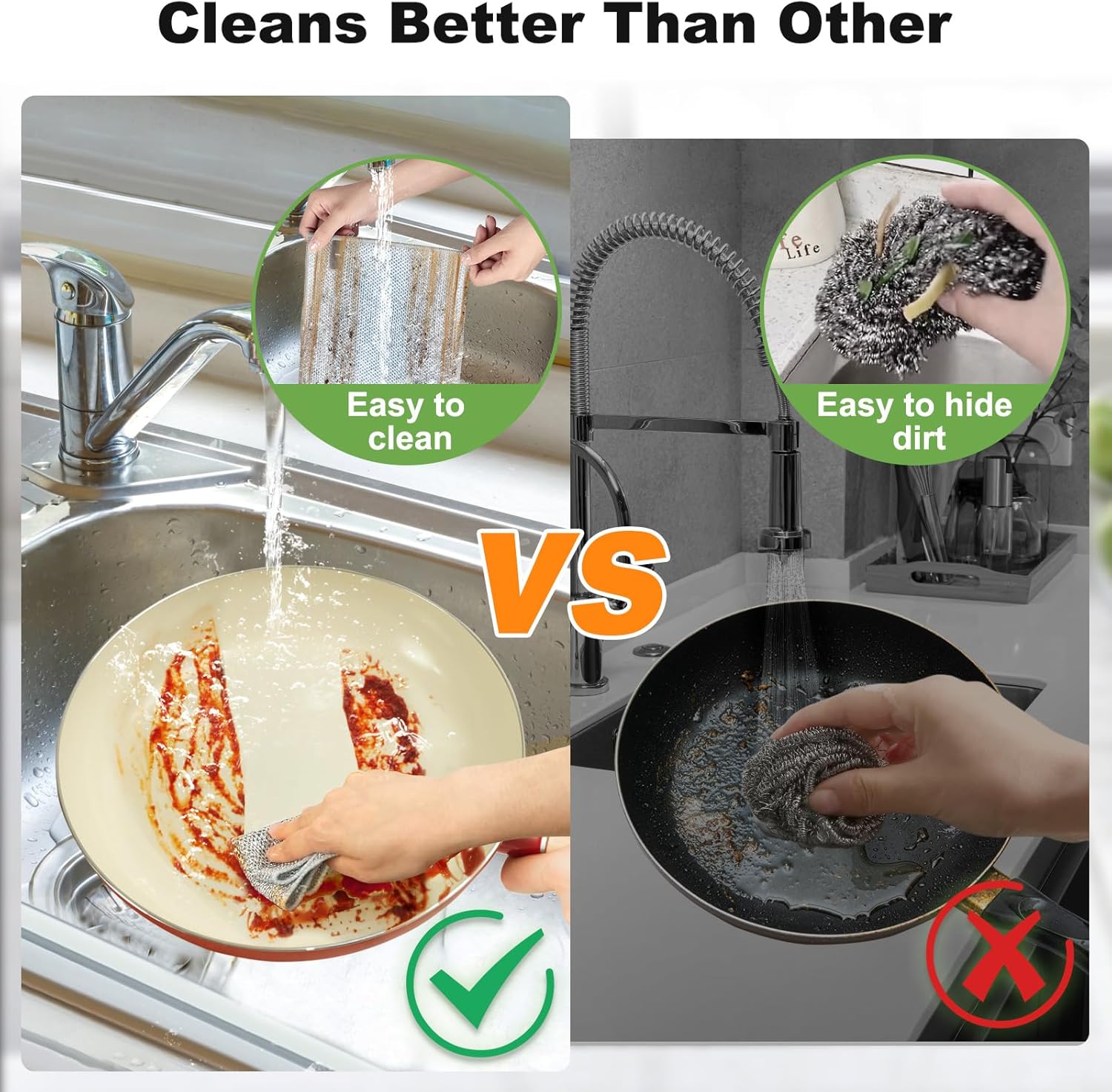 • Powerful Stain Removal & No Scratch---Our anti-scratch cleaning rags are made of soft wire material, which not only provide powerful stain removal capabilities, but also ensure that they will not scratch or damage cookware and countertops. The silver surface is suitable for cleaning dirty pots and greasy stoves.