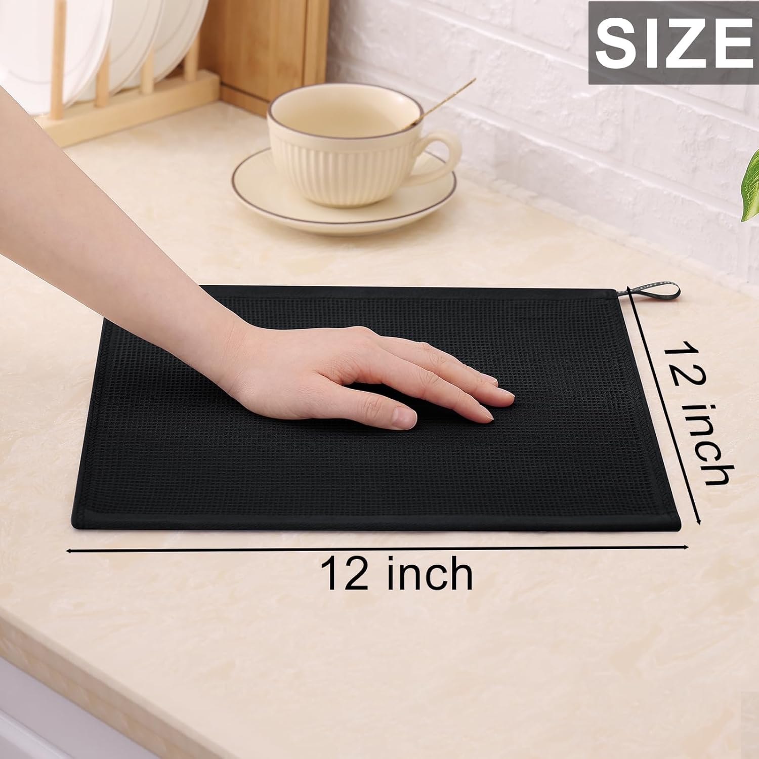 Homaxy 100% Cotton Waffle Weave Dish Cloths - 8 Pack Soft and Absorbent Dish Towels - 12 x 12 Inches Quick Dry Dish Rags - Black