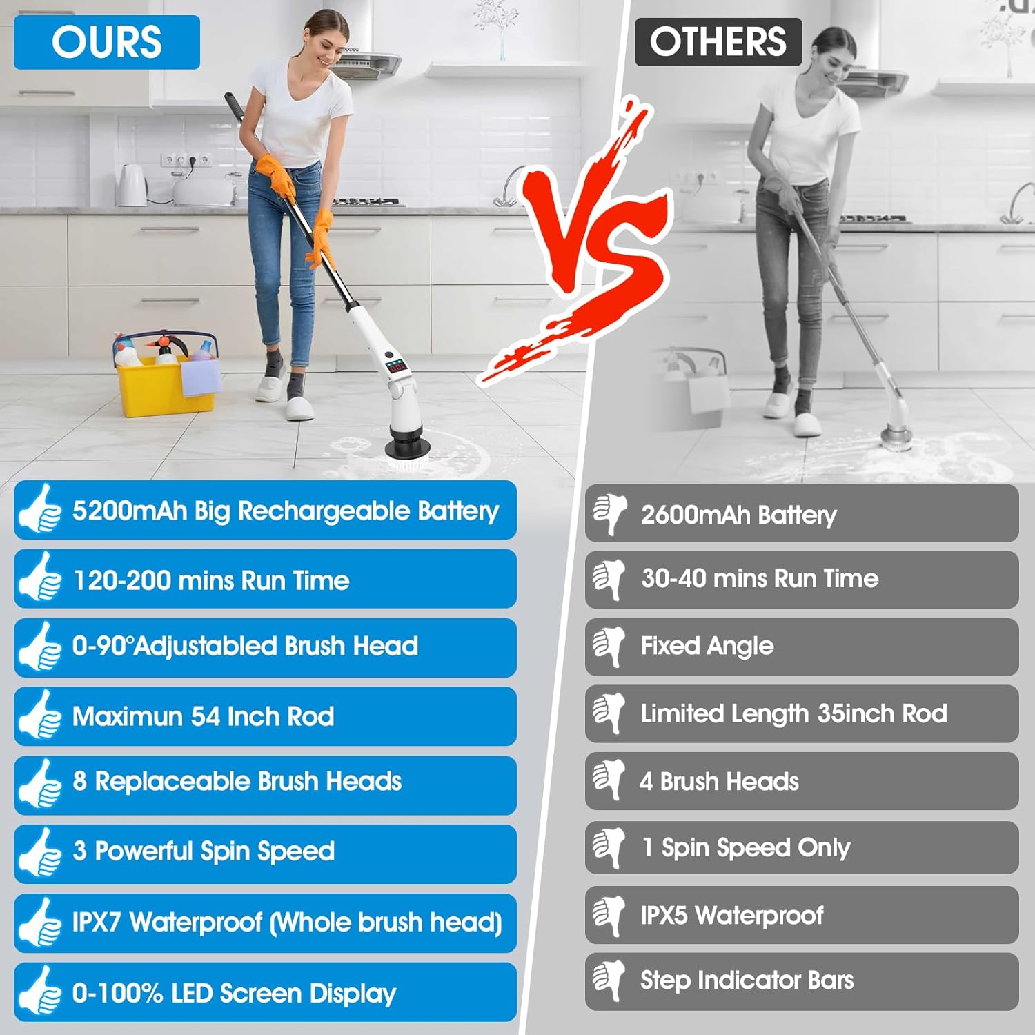 - Effortless Cleaning: If you're looking for a reliable and efficient cleaning solution for home, Hdyfix electric spin scrubber is definitely worth considering. Its versatility, long battery life, and powerful cleaning capabilities make it a must-have for simplifying your cleaning routine, does the hard part for you and no longer leaves you with a tired back or sore knees, wrists and arms, you'll find it way less daunting to clean. This shower cleaner brush electric will be the best investment you make