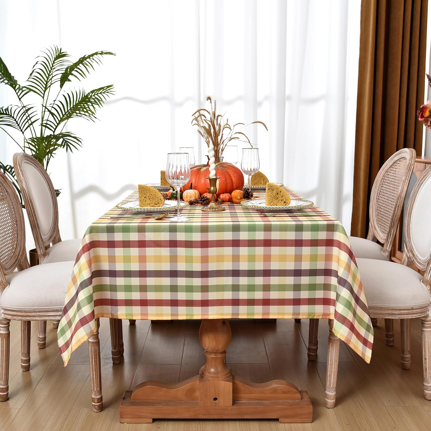 Waterproof Checkered Tablecloth Fabric - Rectangle 58x84 Inch Christmas Thanksgiving Day Table Cloth for Indoor/Outdoor Use - Harvest Table Cover for Kitchen,BBQs,Parties