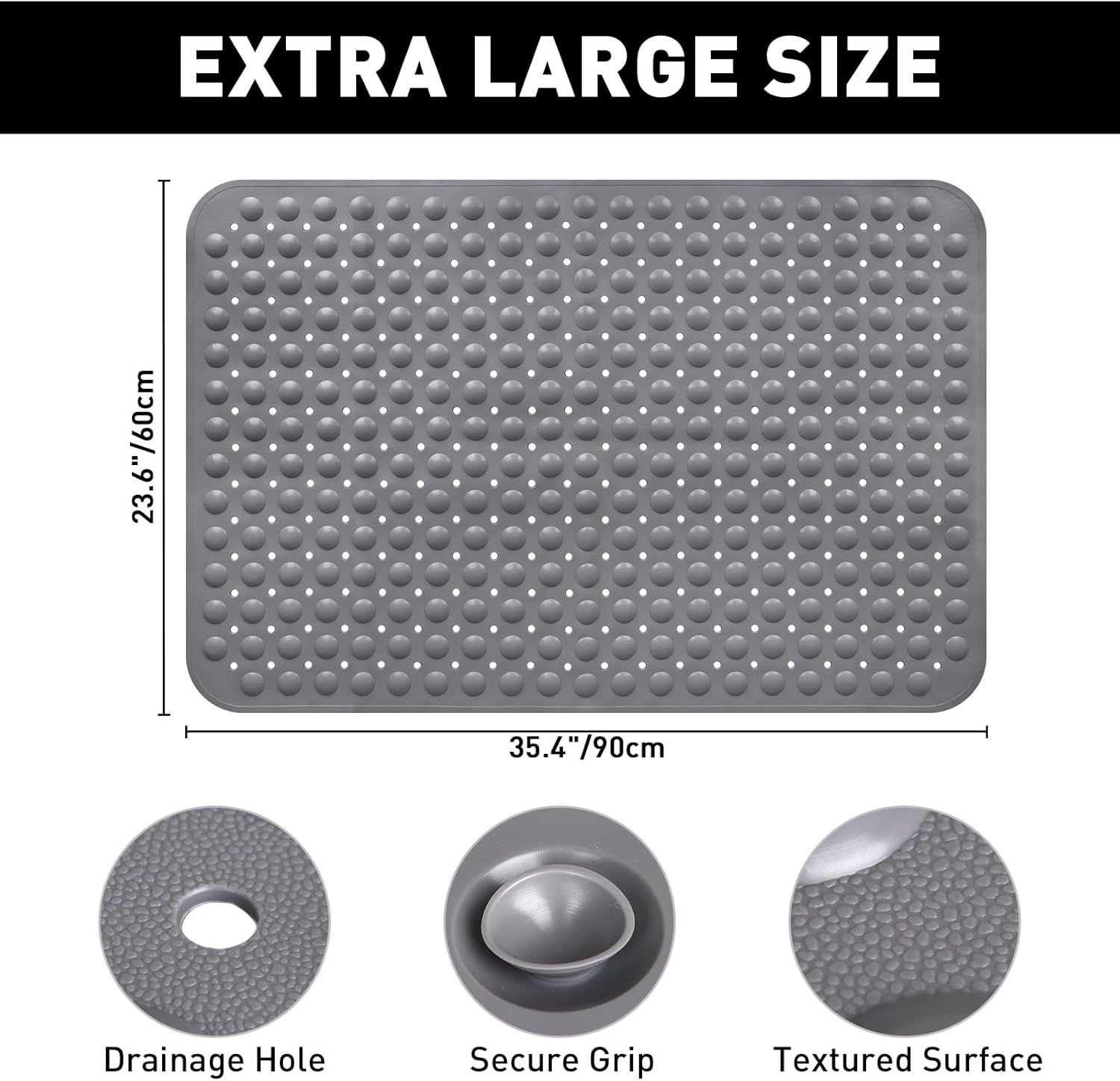 - EXTRA LARGE SIZE: The size of the shower mats for inside is 35.4 x 23.6 inch, which is very suitable for large stand up or walk in showers. It is heavier and thicker than other anti slip shower mat and is perfect for elderly, pregnant woman, gym, spa and commercial