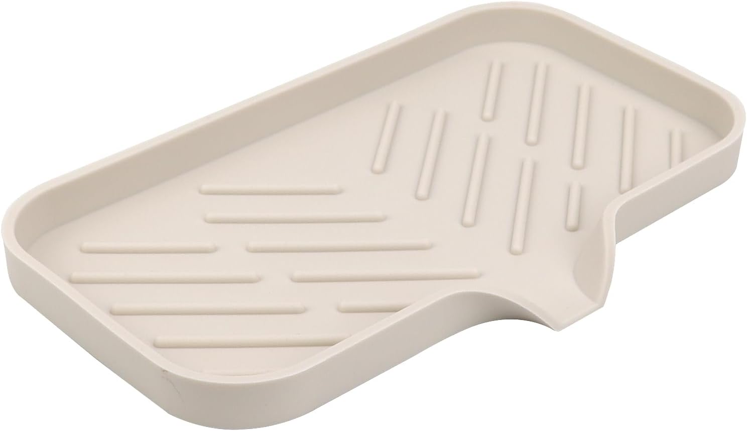 YASMEN Silicone Bathroom Soap Dishes, Sink Sponge Holder for Kitchen, Rubber Soap Dish with Drain, Shower Soap Sponge Tray, Sink or Counter Organizer, for Bar Soap, Bottle, Dish Soap Dispenser-Tapioca