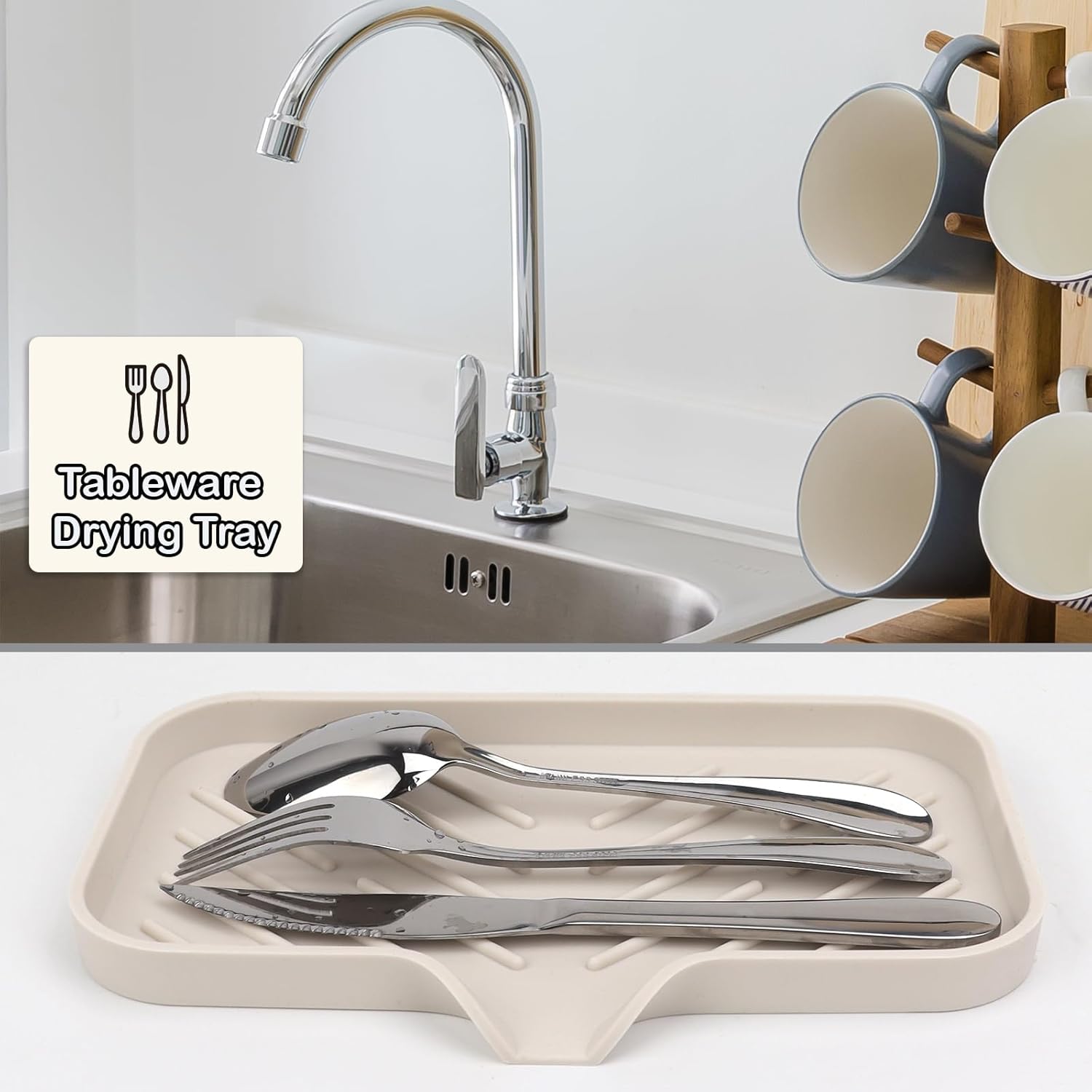 - ★Prevent Items From Sliding: The Silicone Sink Tray has a raised edge and an anti-skid base that prevent your items from sliding or falling off. You can keep your soap or sponge securely and firmly in place without worrying about them slipping into the sink or onto the floor.