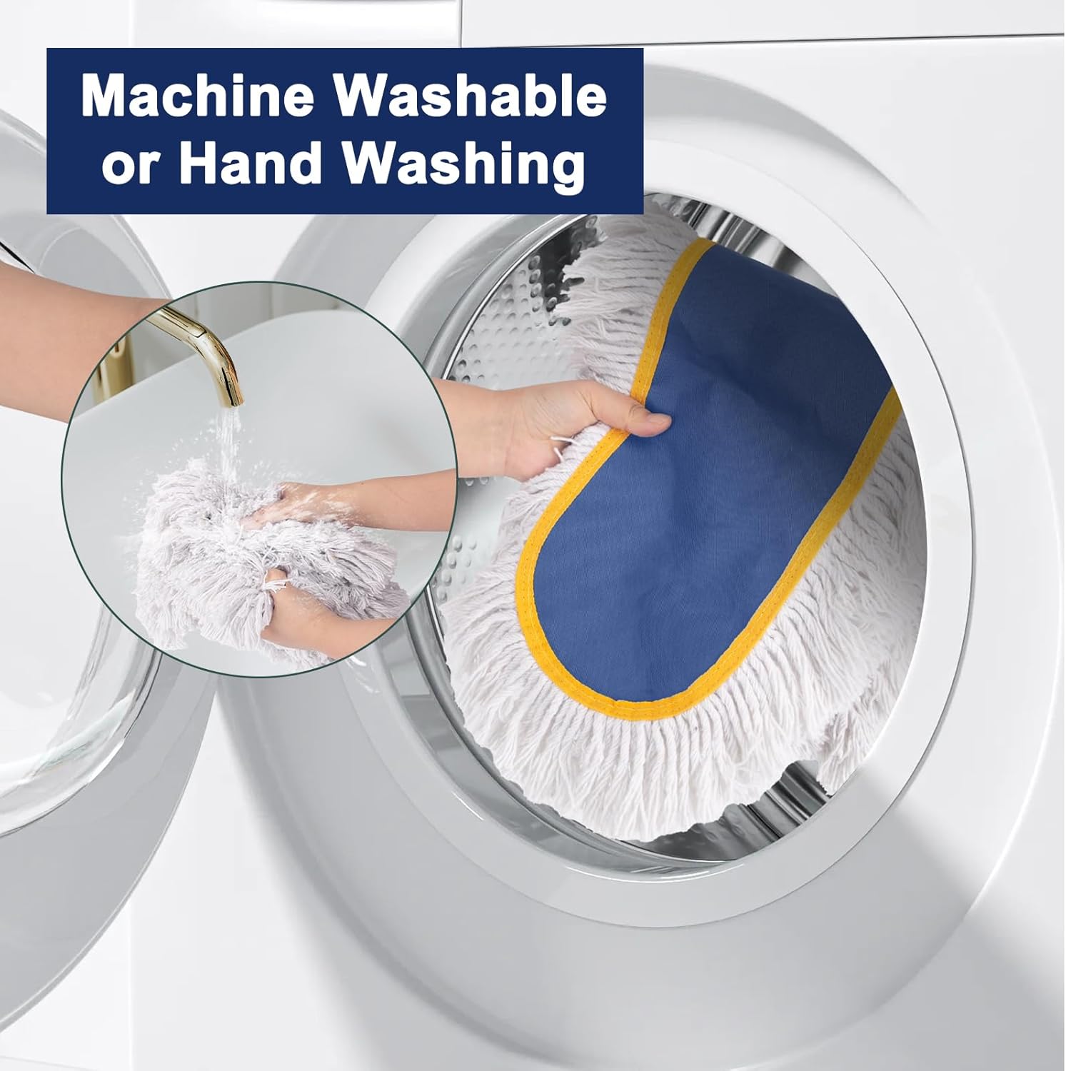 - 🌈Easy to Install and Use: Press the two sides of the metal mop head to easily remove the dust mop replacement head, and improves dust broom cleaning performance.and the heavy duty stitching makes the flat mop more durable.