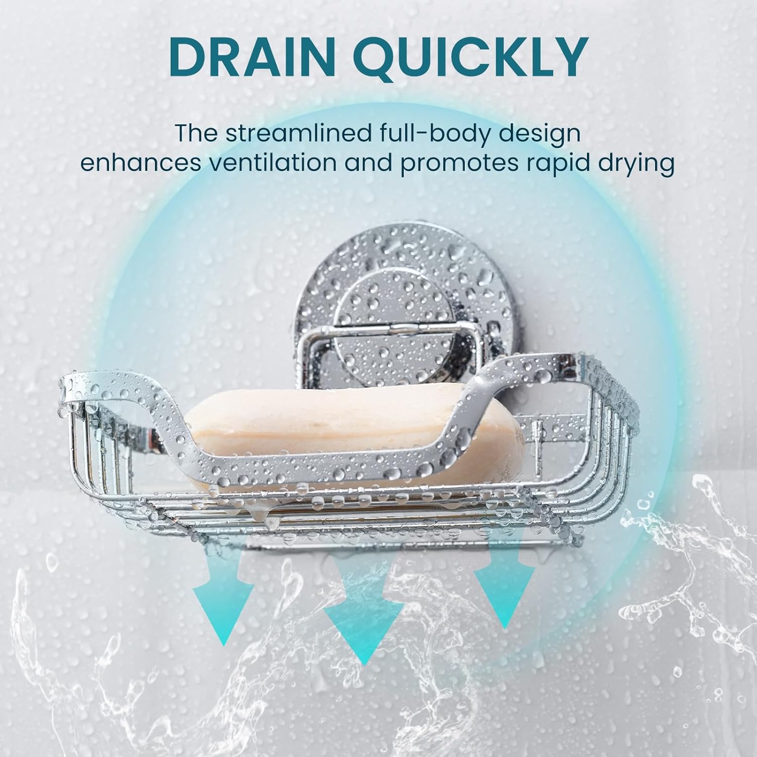 - STRONG SUCTION & DURABILITY: Soap dish shower is made of premium rustproof metal material. Our suction cup of bar soap holder based on the bionics octopus sucker principle is made of anti-aging TPE material, which hold up to 11 lbs. and can be firmly attached to the smooth surface. Can be reinstalled and removed many times without damaging the wall and without leaving a trace