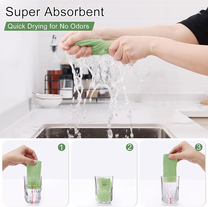 - EXCEPTIONAL ABSORPTION: Made of non-abrasive microfiber material with super absorbency to handle any spill, wet or dry. Our cleaning towels absorb up to seven times their weight in water, making them more effective than traditional towels. Plus, they stay odorless and dry quickly