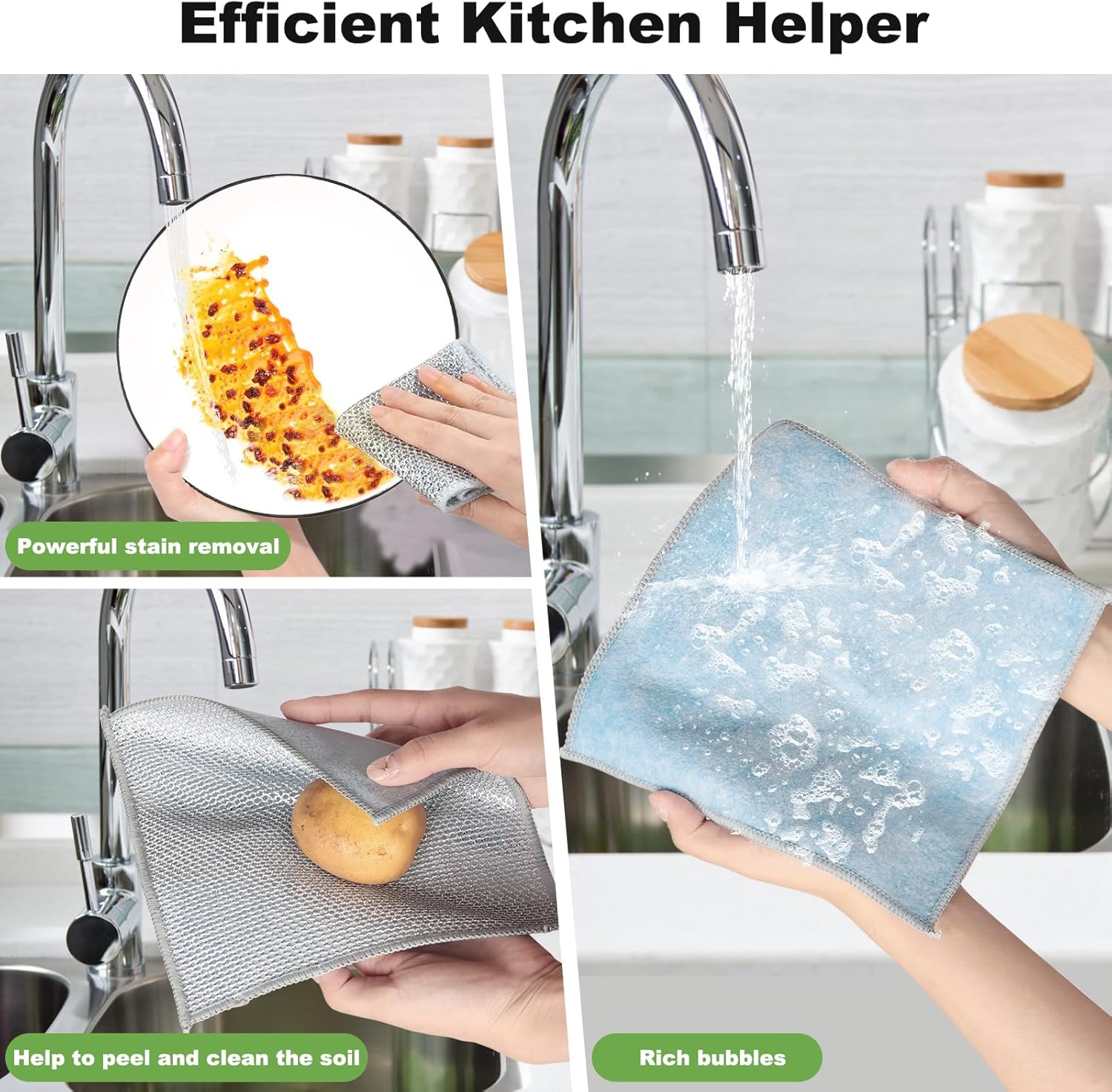 - Easy to Clean---Compared with traditional wire cleaning balls, This wire dishcloths for kitchen not only removes food residue and dirt,and wire dishwashing rag with mesh is easier to clean after use and leaves no residue, keeping your kitchen clean and tidy at all times.