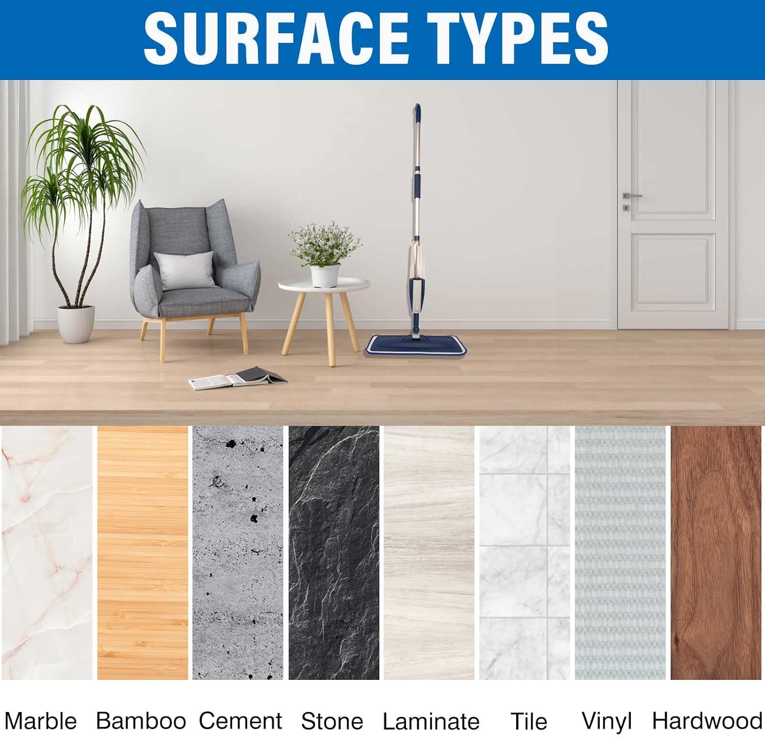 - Washable and Reusable-The back pad can be connected with the mop head by hook, which is convenient for disassembly.The mop pad can be washed over and over again, machine washable, hand washable, and then reused. Never use bleach.