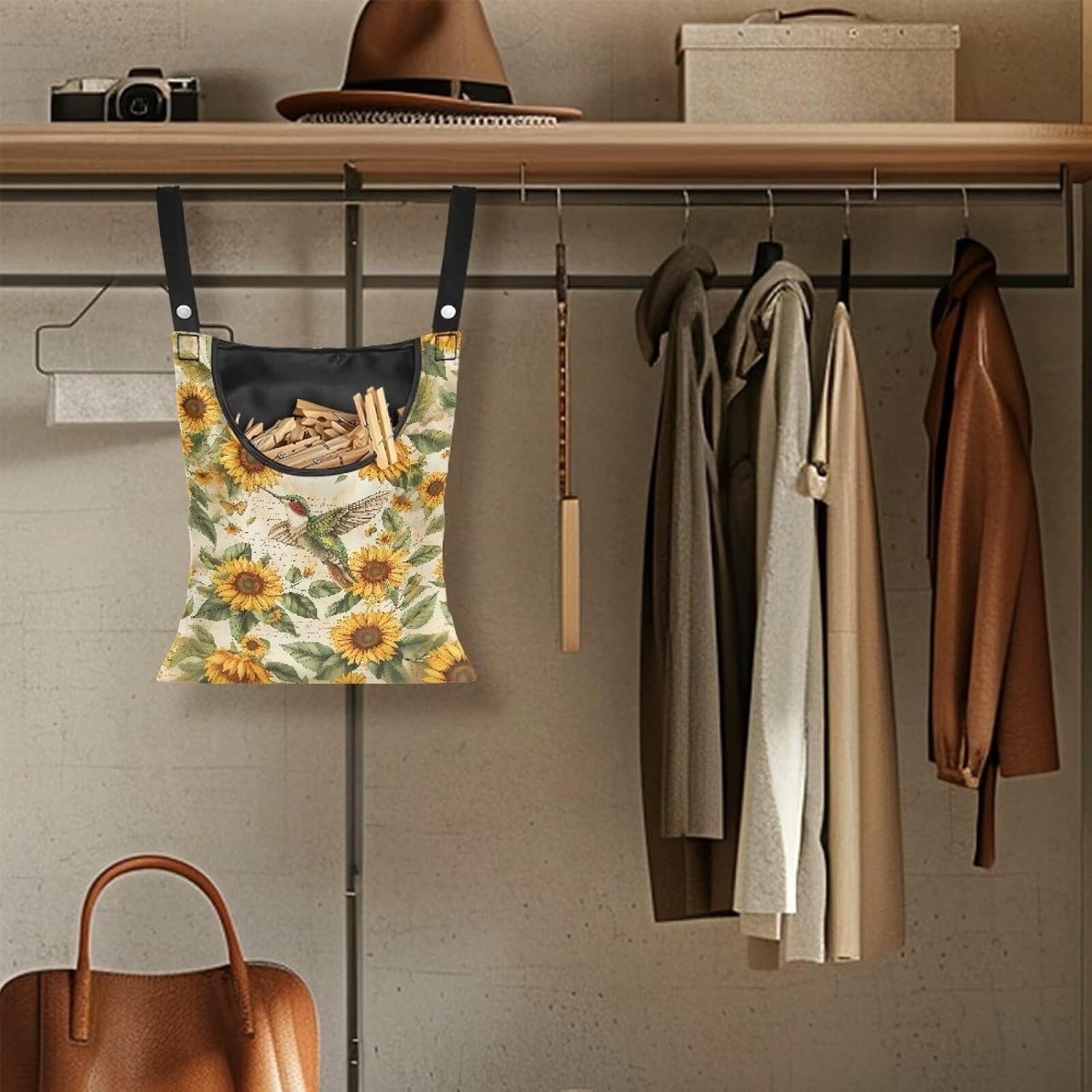 Hummingbird Laundry Clothespin Bag Clothespin Storage Hanger Bag with a Large Opening, Hanging Storage Organizer with Hanging Rope for Home Outdoor, 14.5 x 12 Inch