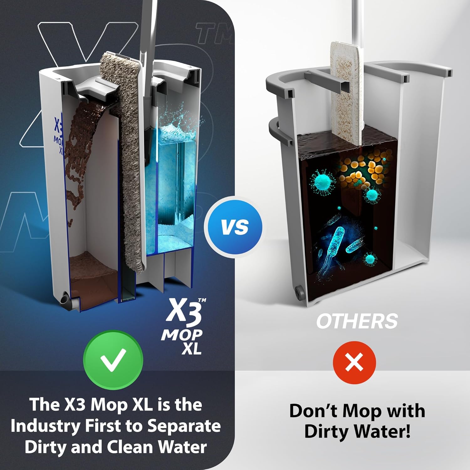 - 🌟 35% LARGER DESIGN: Cover more ground and get your cleaning done faster with our expansive mop head! The X3 Mop XL ensures you spend less time mopping and more time enjoying a clean home.