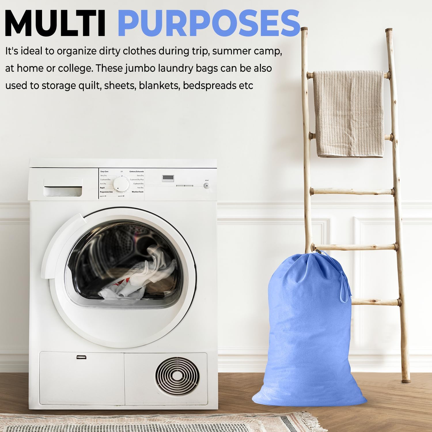 - MULTI PURPOSES - It's ideal to organize dirty clothes during trip, summer camp, at home or college. These jumbo laundry bags can be also used to storage quilt, sheets, blankets, bedspreads etc.