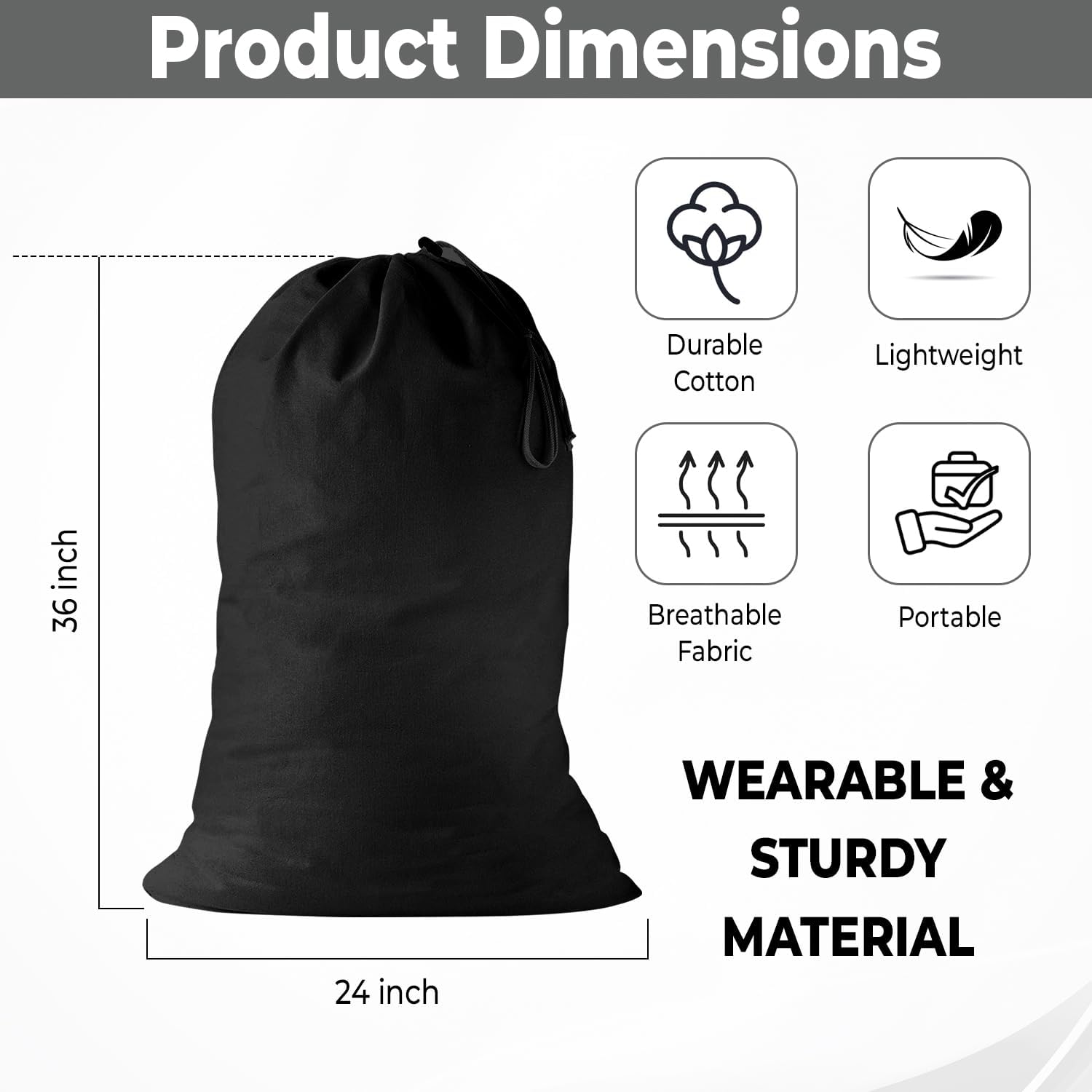 2 Pack - Extra Large Cotton Laundry Bag, Heavy Duty Large Laundry Bags 24 x 36 inch XL Drawstring Travel Organizer Bag Fit Hamper Basket Camp (Dark Grey, Pack of 2)
