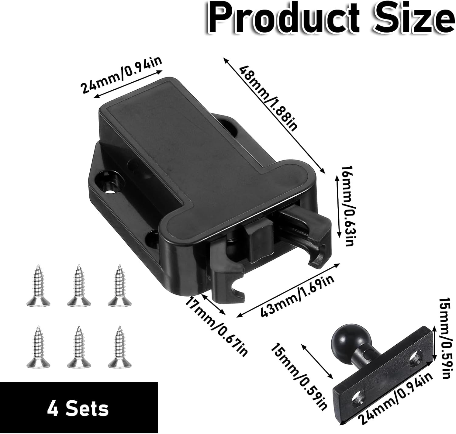 - Sleek and Modern: With a minimalist design, our ball catch door hardware eliminates the need for handles, enhancing the visual appeal of your cabinets. This no touch door opener achieves space savings and an elegant look, making it a good cupboard latch for contemporary interiors.