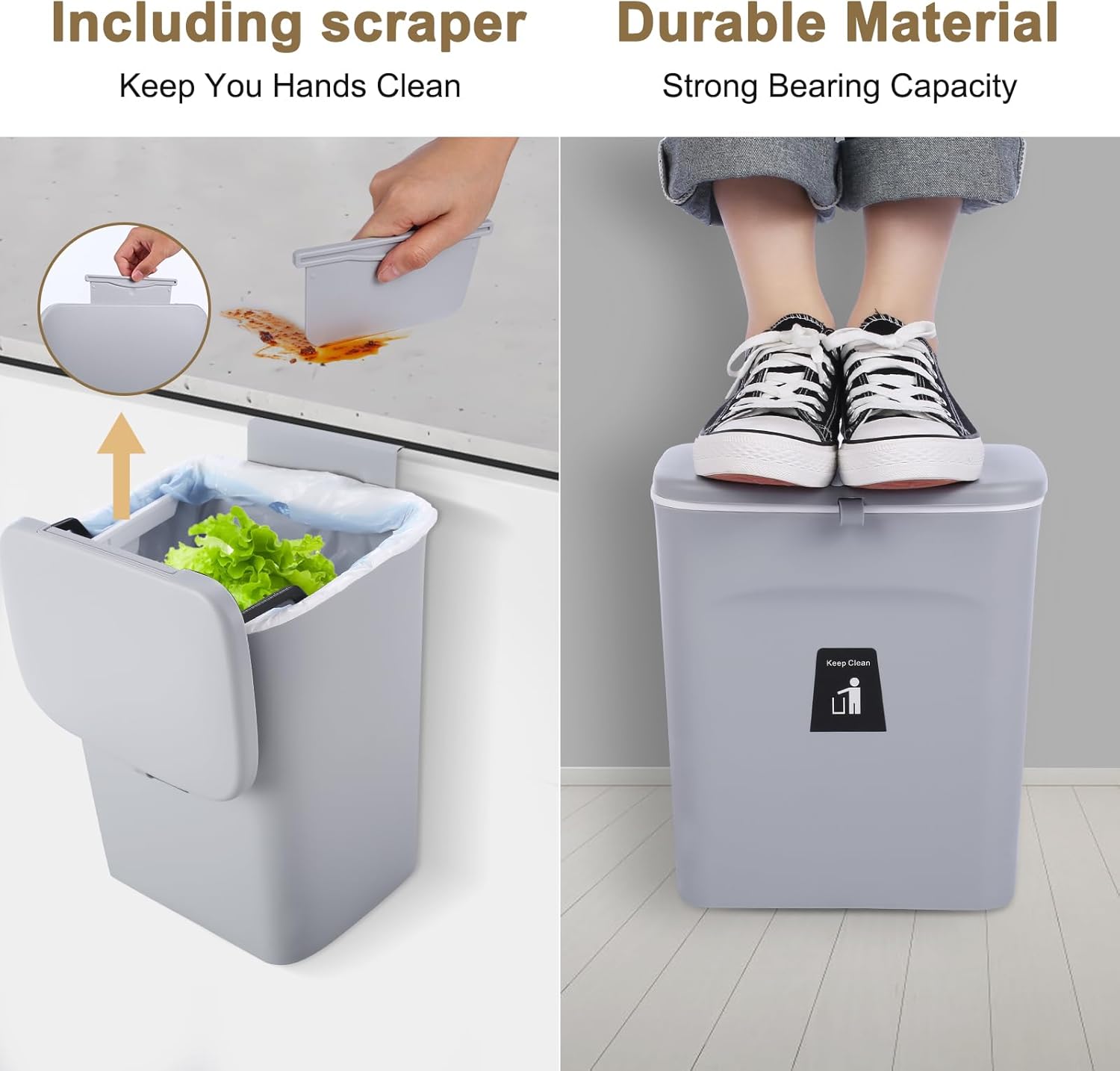 - 【Odor-Free Kitchen Waste Solution】Say goodbye to unpleasant smells!Odor-Blocking design helps keep your kitchen smelling fresh,and the lid ensures that waste and debris stay contained.With its hanging design,it's easy to keep this trash can off the floor and out of the way,freeing up valuable space in your kitchen
