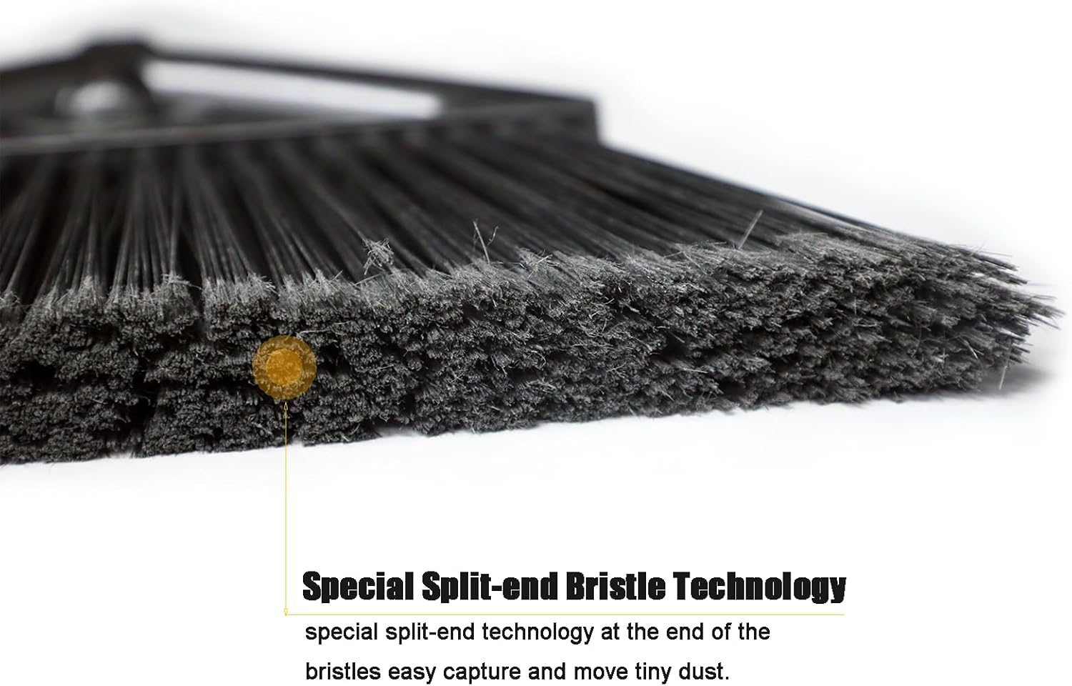 - Split-End Bristle Technology: Our heavy-duty broom features firm bristles with a special split-end design that easily captures and moves tiny dust particles