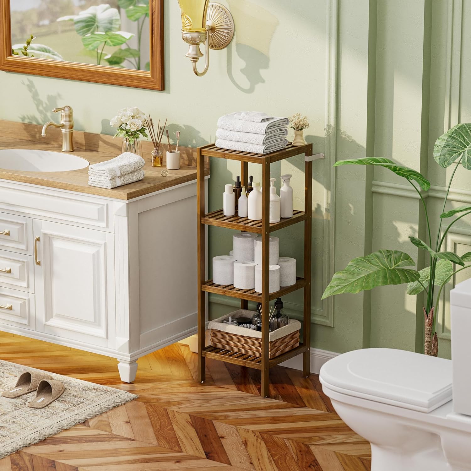- ★ EASY TO ASSEMBLY & STURDY: With included illustration and tools, just follow the instructions and tighten the screws will set it up; All solid bamboo parts are fastened by galvanized screws, making this toilet rack very stable and wobble-free, each shelf holds up to 33 Lbs.