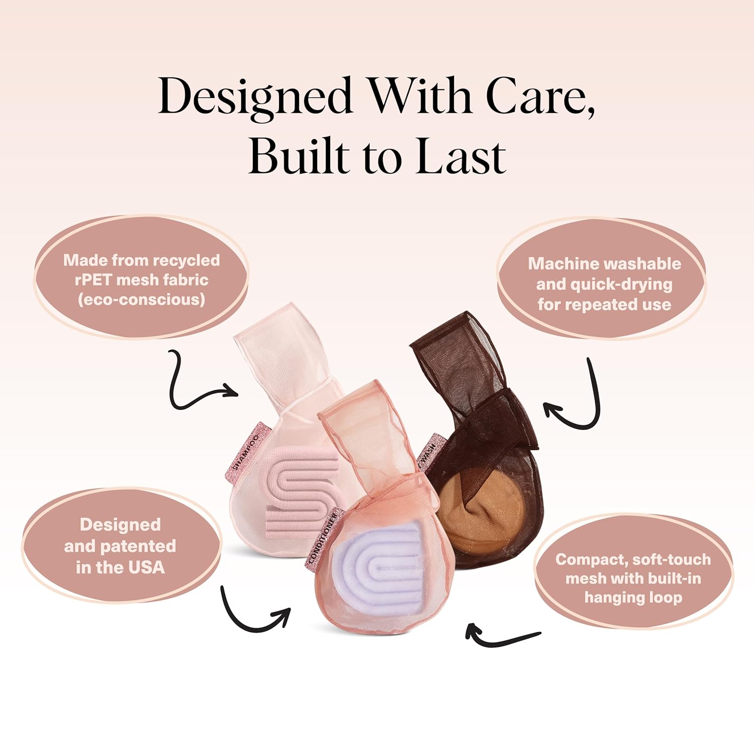 Kitsch Bar Soap Saver Bag – Patented Mesh Bag Soap Holder for Shampoo, Conditioner & Body Wash Bar - Extends Use & Prevents Soggy Mess - Recycled Mesh Pouch - Blush, Terracotta & Chocolate, 3pc Set