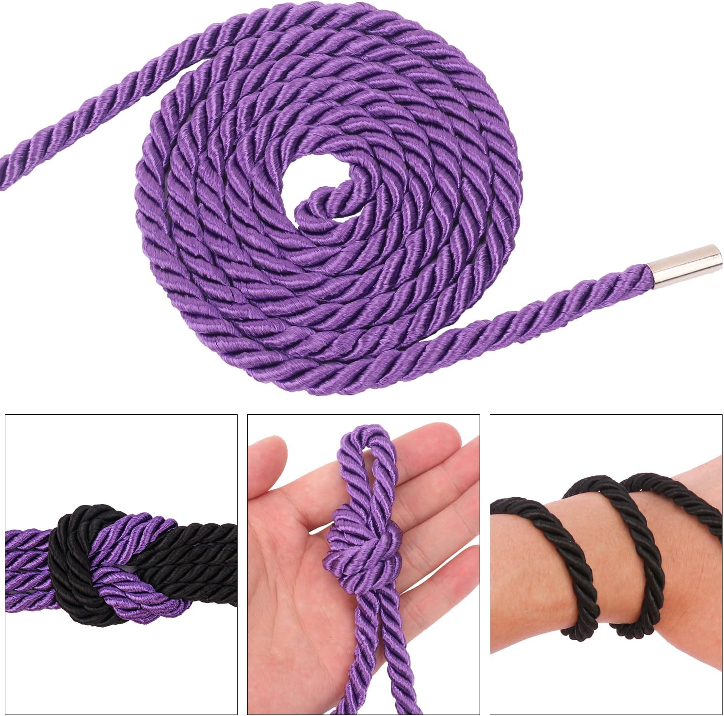 - 【Suitable Size】 This comprehensive set includes 16 individual Silk Soft Rope, eight in black and eight in purple. Each rope measures 32 feet in length and 0.31 inch in thickness, allowing ample room for all your crafting or securing needs.