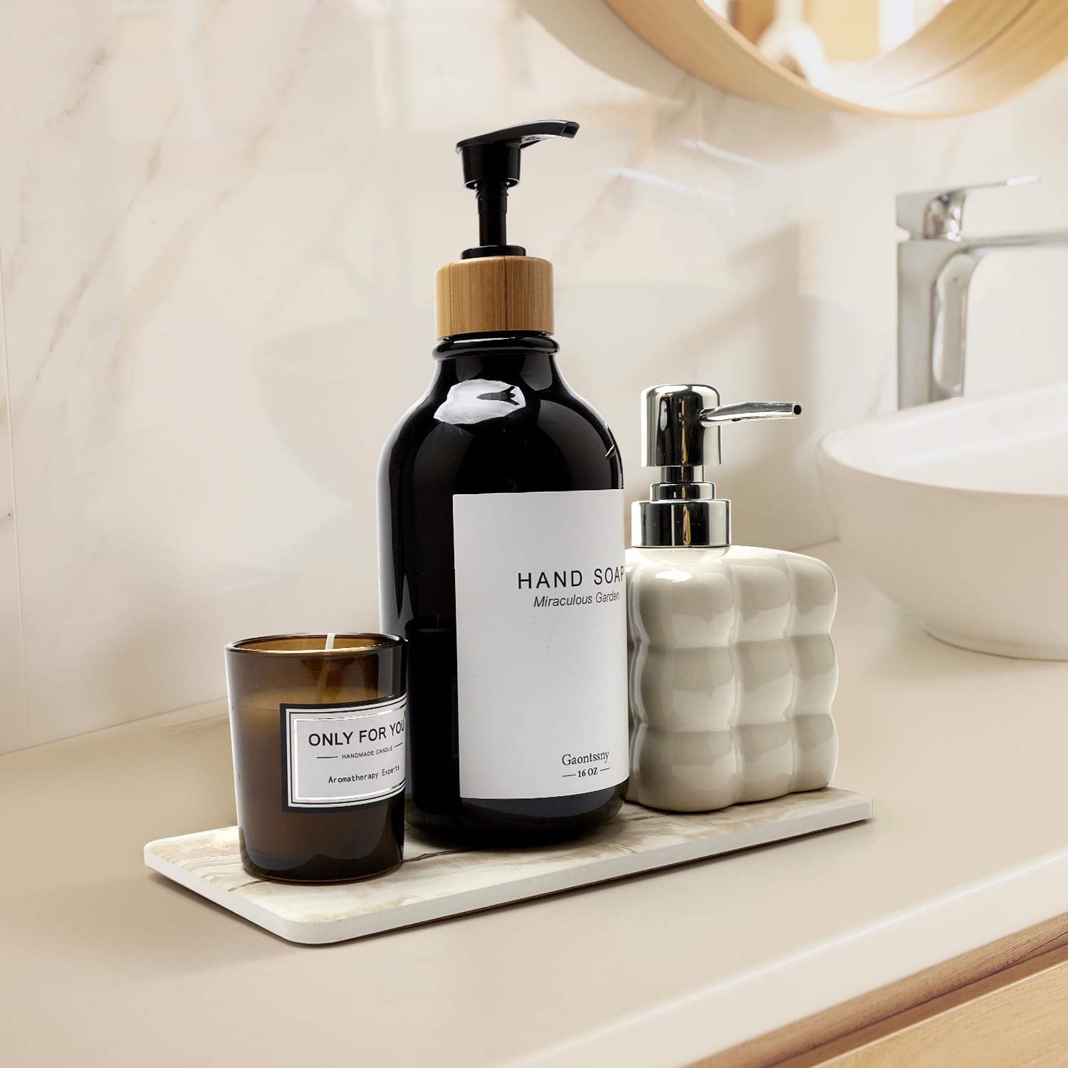 - WIDE RANGE OF APPLICATIONS: The marble soap tray is versatile enough to use in the kitchen or bathroom for hand soap, cups, soap bottles, pump bottles, dish sponges, toothbrush holder, make-up bottles. Water is absorbed immediately, no more mess!