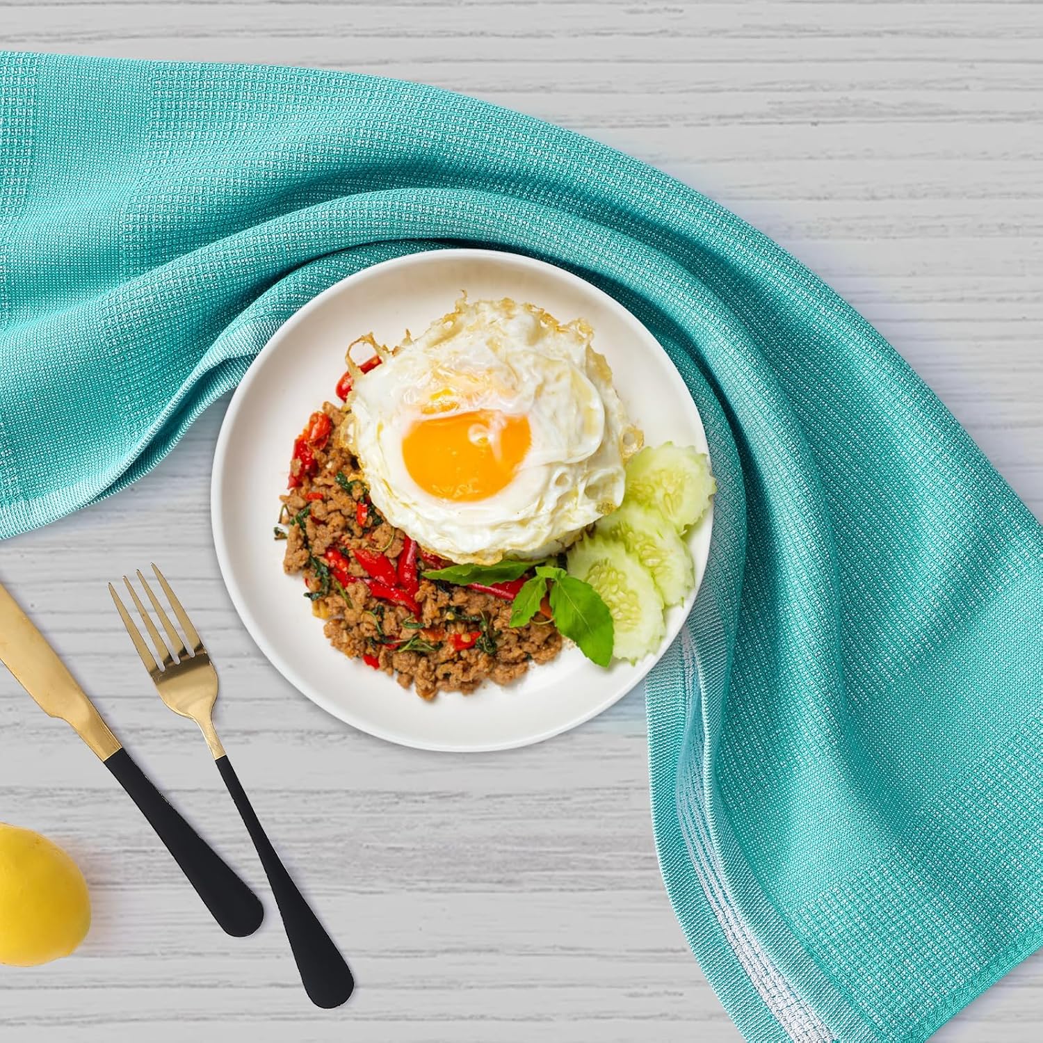Homaxy Premium Kitchen Towels(18”x 28”, 6 Pack), Large Cotton Kitchen Hand Towels, Flat and Terry Dish Towels, 380 GSM Highly Absorbent Tea Towel Set with Hanging Loop, Teal