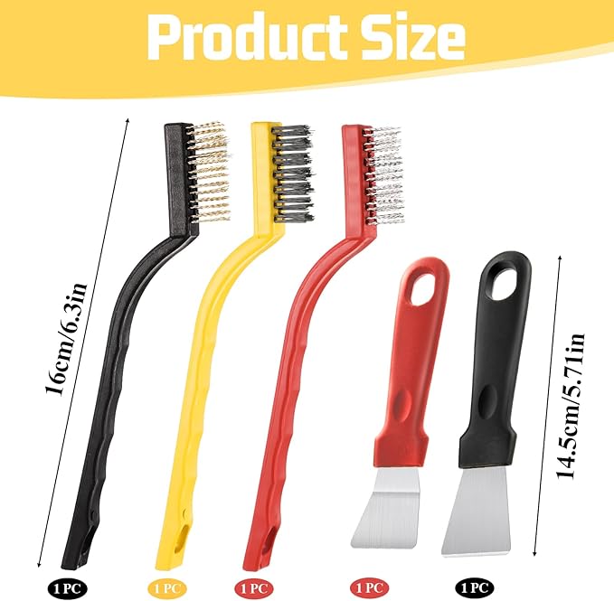 - Compact Size for Easy Storage: with the cleaning brush measuring approximately 6.3 inches (16 cm) and the scraper at 5.7 inches (14.5 cm), this set is both convenient to use and easy to store. The tools are designed with a hanging space at the end, ensuring they don’t take up unnecessary room in your cleaning supplies.