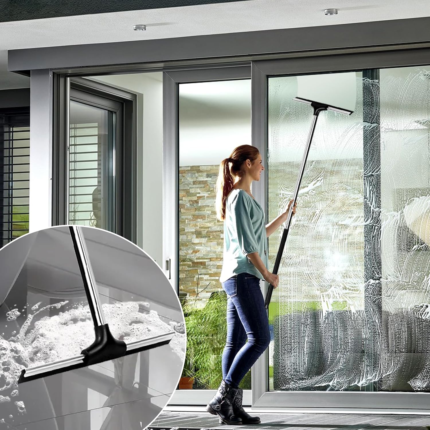 Floor Squeegee Scrubber 59" Long Stainless Steel Handle with 10" Wide Silicon Rubber Blade for Floor Washing and Drying Shower Glass, Garage, Windows, Marble, Wood Surfaces