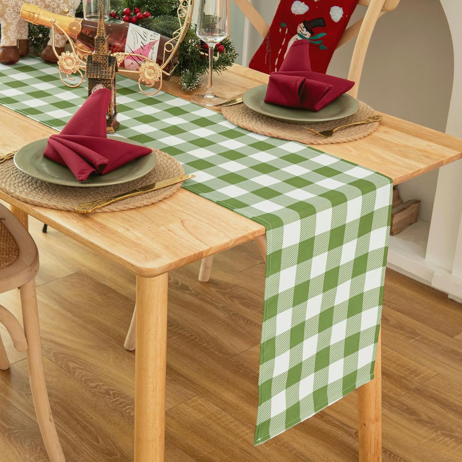 - CLASSIC GINGHAM CHECKERED DESIGN: Our checked table runner features a pattern of small, evenly spaced checks in two contrasting colors, often white and another color. The classic gingham plaid pattern for table cloth is a timeless and versatile choice