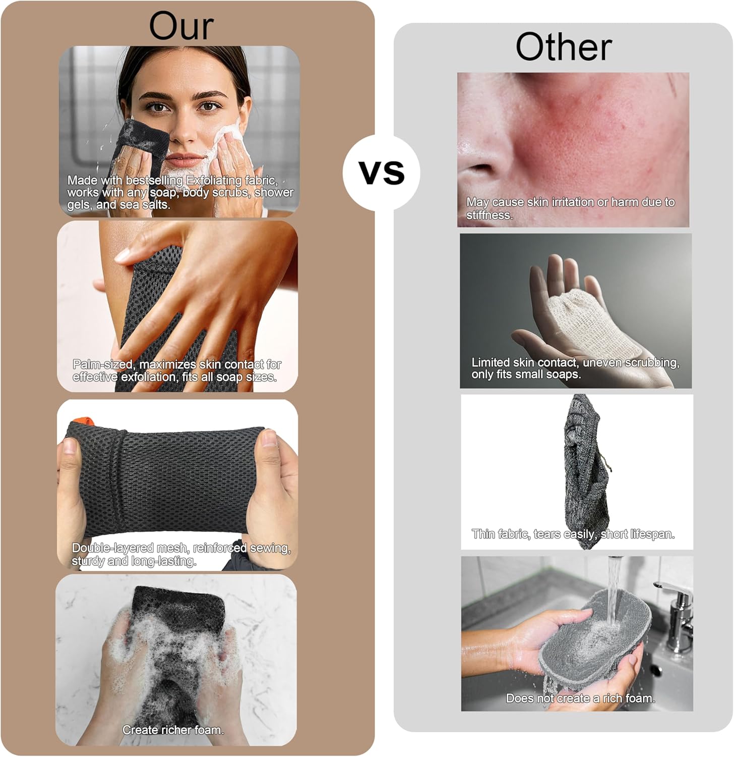 - Rich Lather Creation: The textured pouch quickly produces a rich, luxurious lather, similar to a loofah, enhancing your shower experience while conserving soap. The ergonomic palm-size design ensures ease of use.