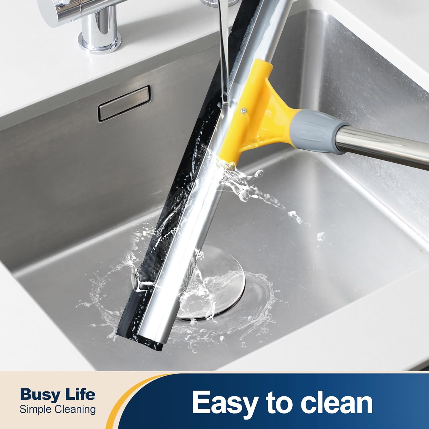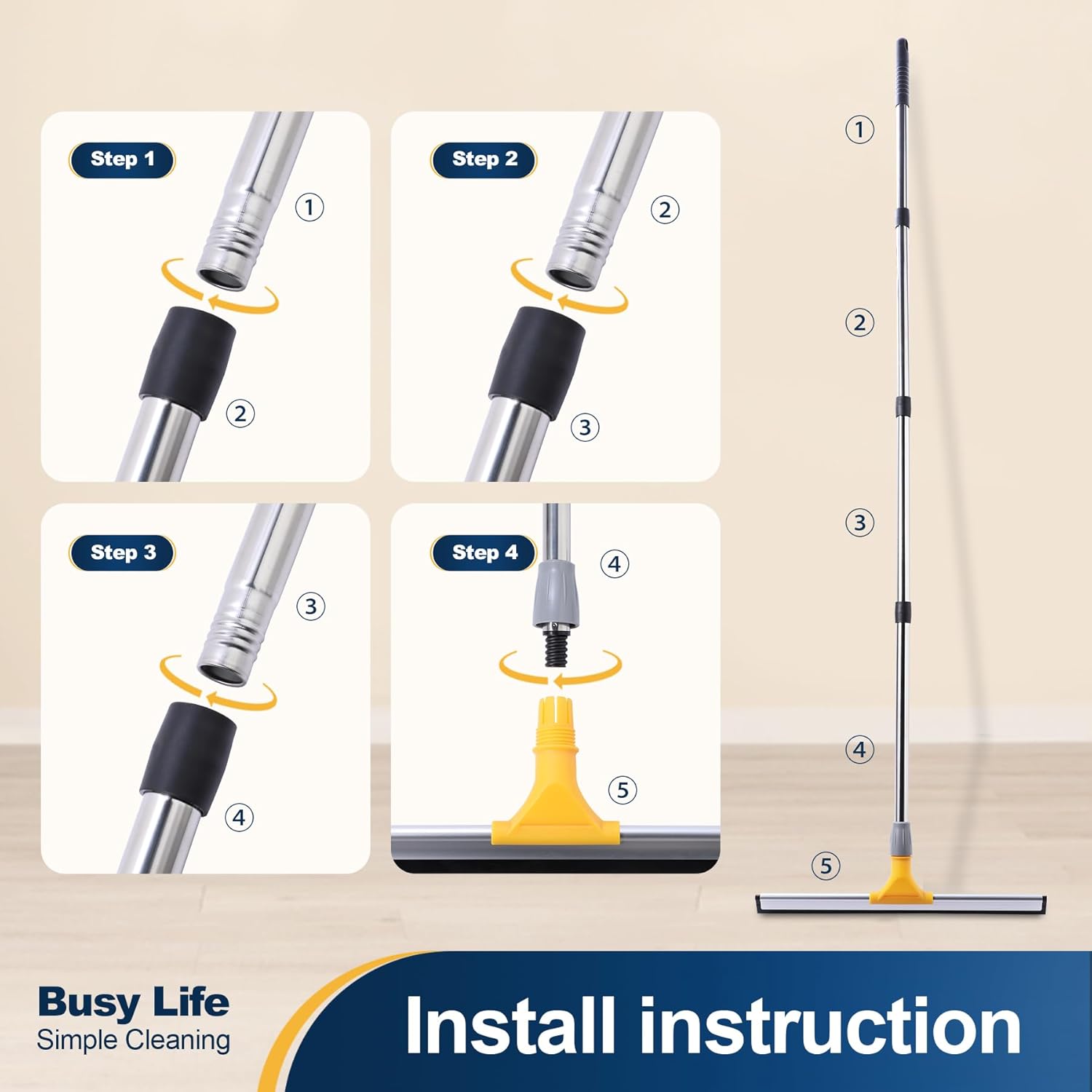 - Yocada 17.7" Floor Squeegee Rubber TPR Blade Scrubber Broom: The stainless pole length can be adjusted from 32.7 inches to 61.8 inches, you can just use poles to adjust. Achieve the good length with a simple snap, providing you with optimal control and maneuverability during your cleaning routine