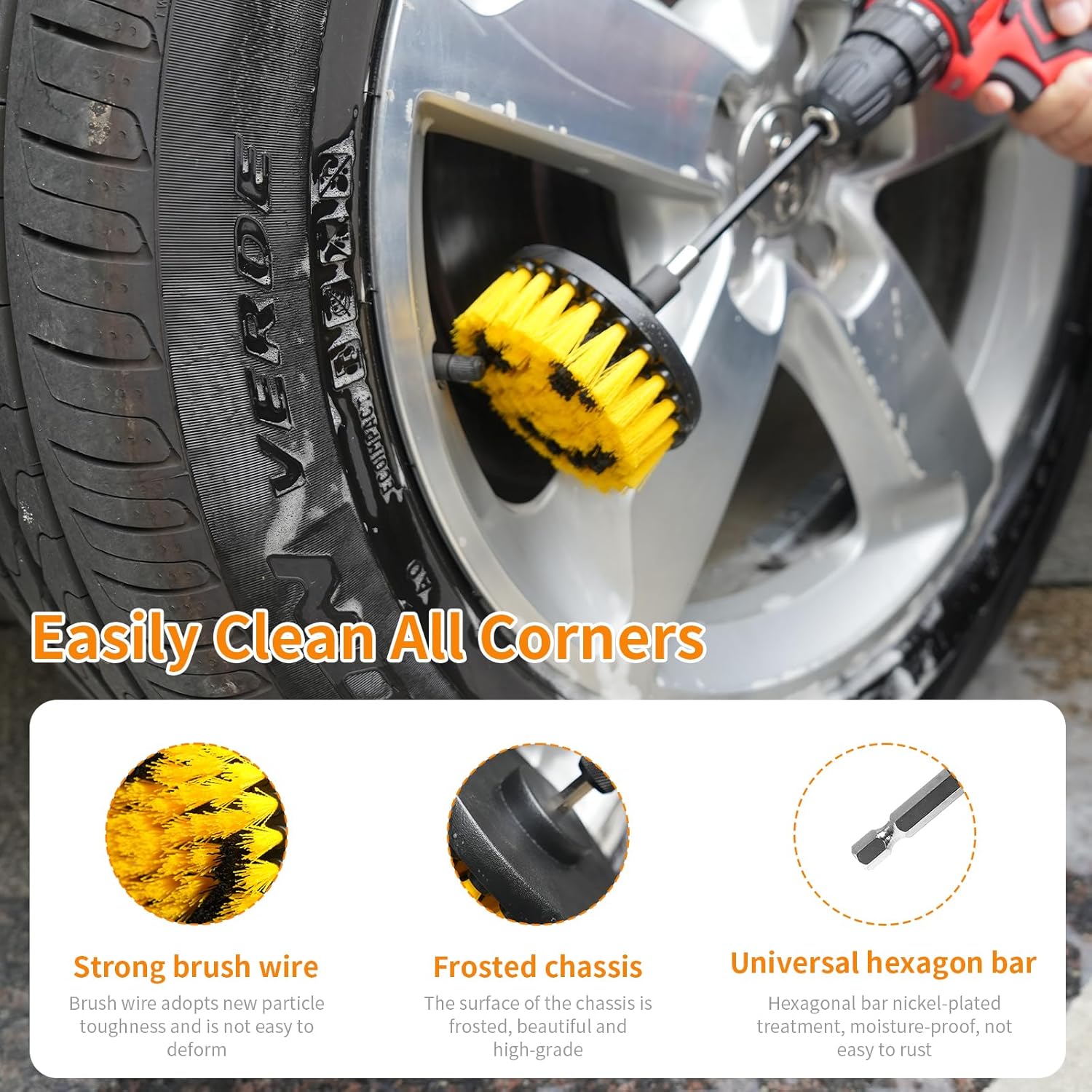 - Package Includes: 7 different sizes of drill brushes, 2 crevice cleaning brushes and 1 extension pole (Drill Not Included)