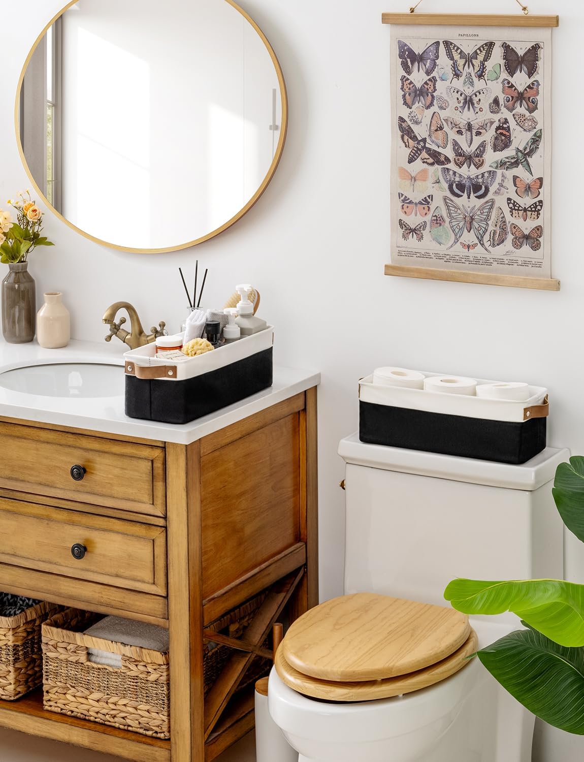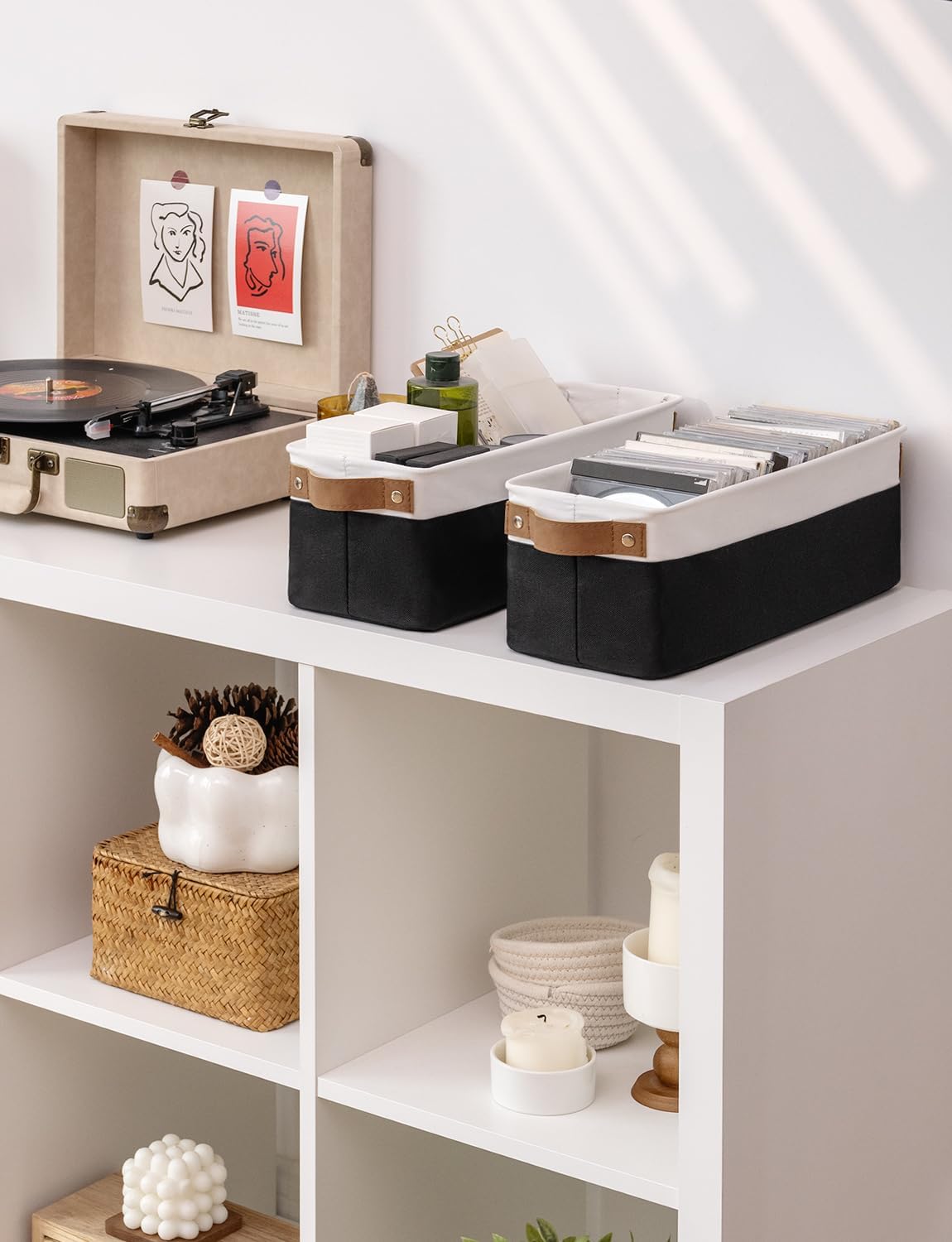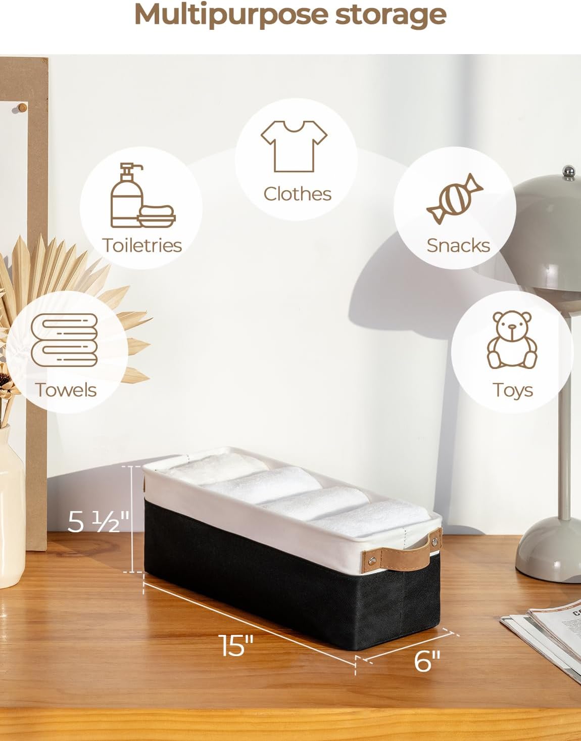 - Premium Materials: The storage basket is crafted from durable, thick fabric and features wide PU leather handles with rivet reinforcement, ensuring both strength and ease of movement to any desired location.