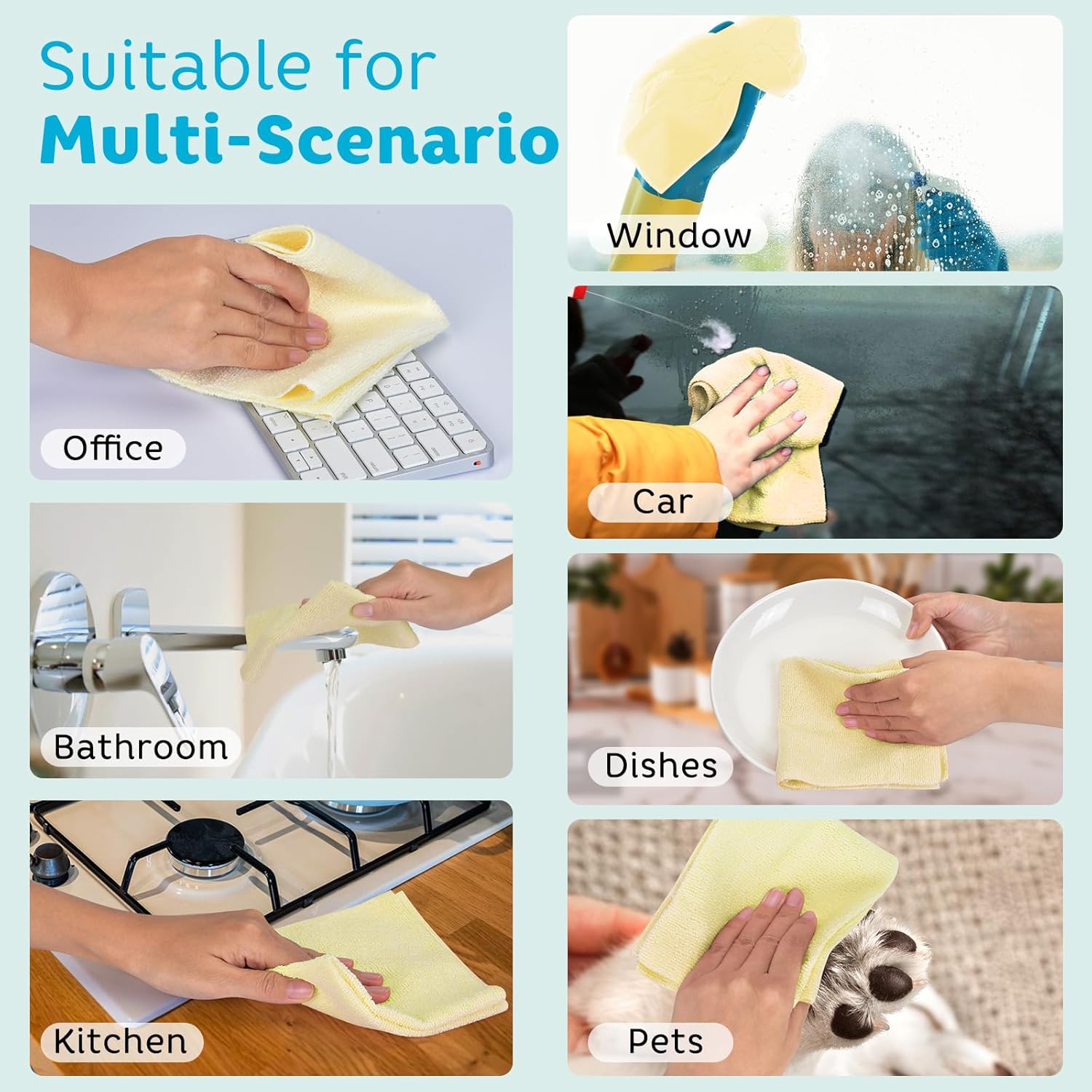 - Instant SOAK UP - Absorbing 4 times more than cotton cloths and 5 times their weight in water, these microfiber cleaning cloths are the all-purpose rags for glass, dishes, automotive,and smooth surfaces.They quickly tackle messes, oils, and liquids, outperforming sponges&conventional towels in speed and efficiency