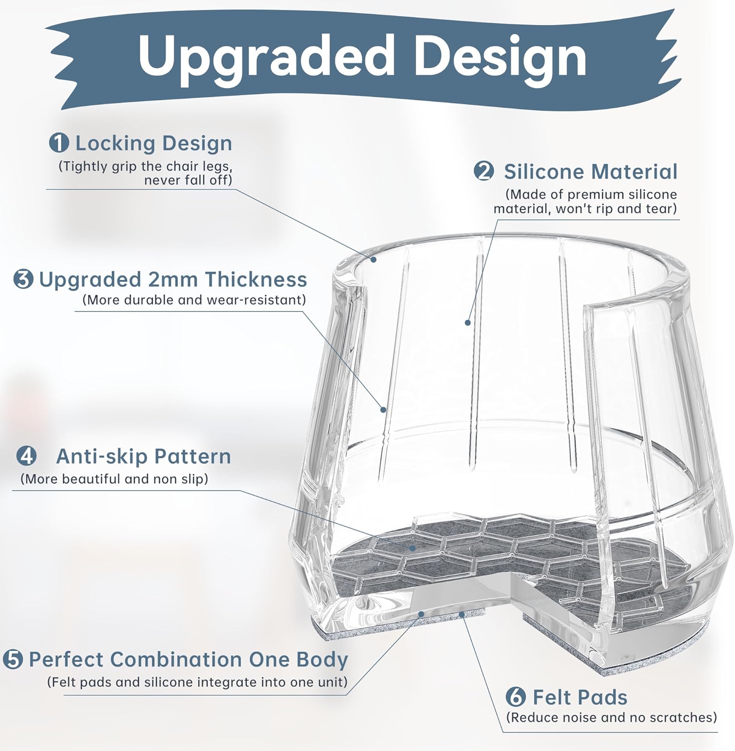 - ✅【Comprehensive Improvement】The chair leg floor protectors use special technology to combine the felt and silicone into one inseparable piece, which prevent the felt pad from falling off during use. We chose the premium quality silicone material which bonds the felt pad better, and won't tear easily when stretched.