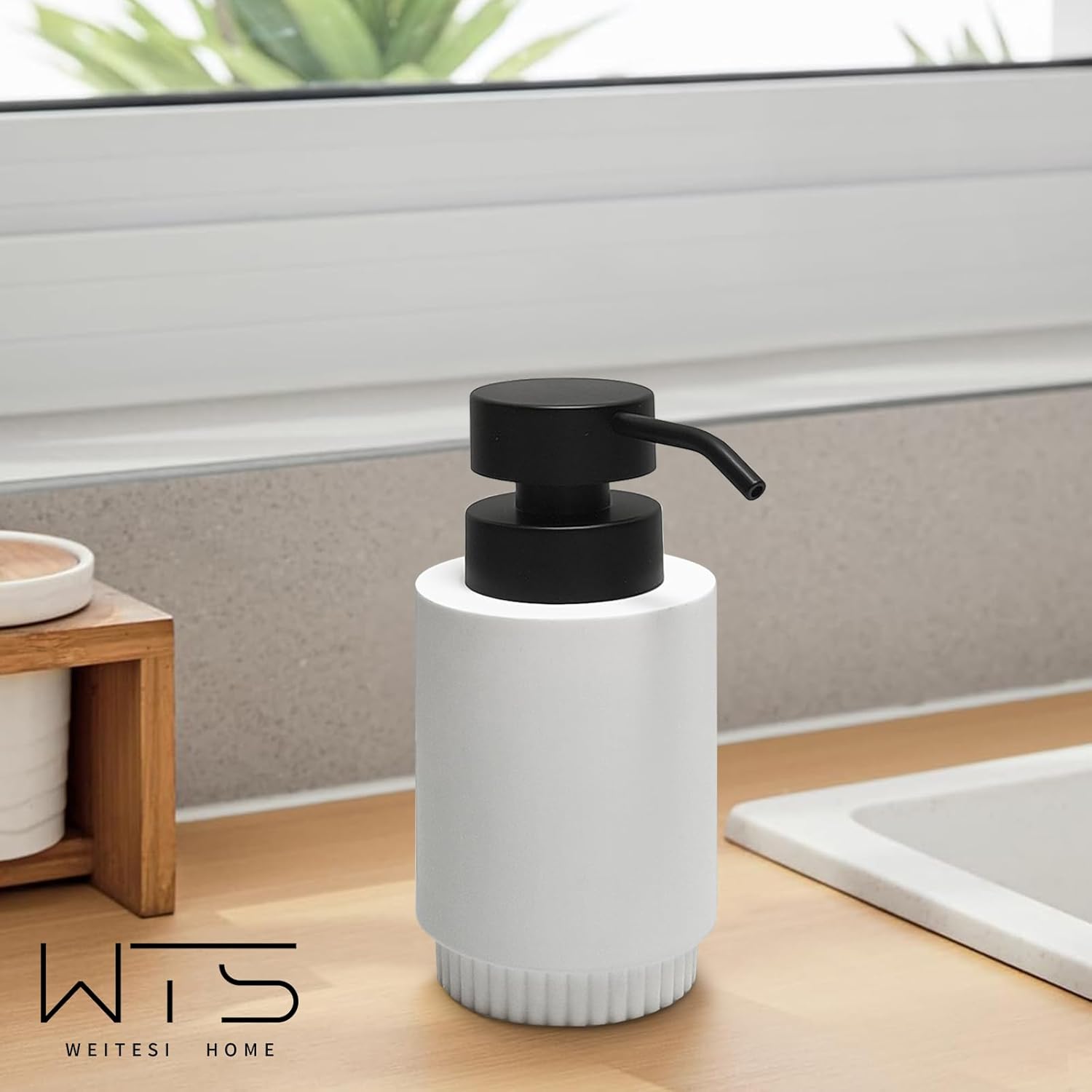 - Durable Construction with Reliable Plastic Pump: Crafted from premium resin, this soap dispenser is designed for exceptional durability, ensuring it stands up to daily use without chipping or cracking. The high-quality plastic pump is easy to press, delivering just the right amount of soap or shampoo every time, providing dependable performance for years to come.High-quality plastic pump do not rust and have a long service life.