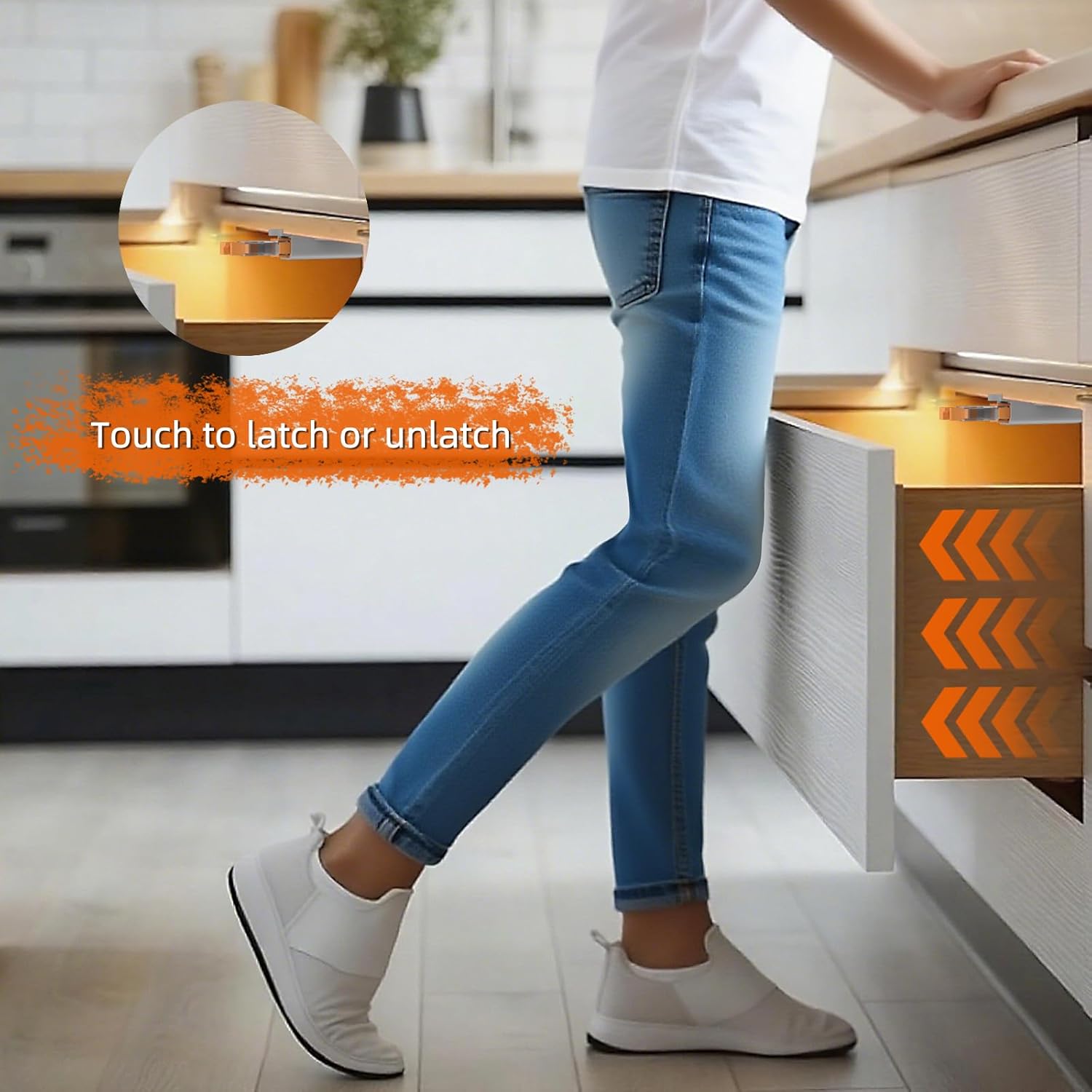 - Convenient to Use: Think about how many times you've had your hands full and needed quick access to open the cabinet door to take things? Effortlessly open and close your cabinets with this heavy duty cabinet push latch, simply press the door to latch or unlatch, eliminating the need for handles or knobs. Ideal for cabinet doors and drawers without handles in home, RV, boat, and any other places.