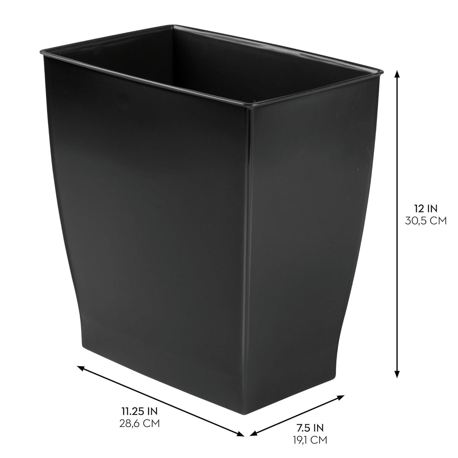 - COMPACT SILHOUETTE - The iDesign Set of 2 Mono Trash Cans display a clean, minimal design that pairs harmoniously with any decor; Its open-top design makes for easy trash disposal and keeps any area neat and orderly; For convenience, the low-profile silhouette nestles neatly into tight corners or fits inside cabinets or under desks for discreet storage; Set of 2
