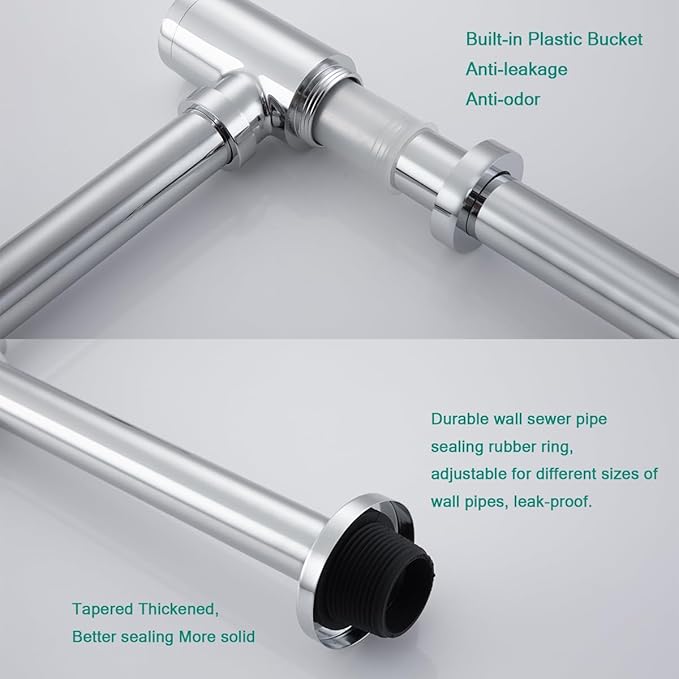 - Tube thickened: moisture-proof, anti-corrosion, high temperature resistant. With multiple anti-odor design.The simple pipe design provides high flow drainage while reducing sink drain pipe clutter,Smooth interior won't cause buildup or bad odors.
