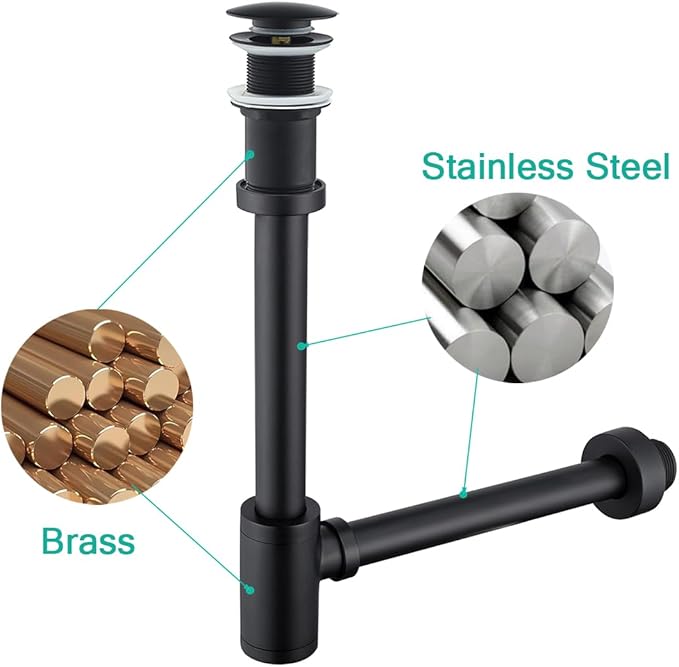 - Tube thickened: moisture-proof, anti-corrosion, high temperature resistant. With multiple anti-odor design.The simple pipe design provides high flow drainage while reducing sink drain pipe clutter,Smooth interior won't cause buildup or bad odors.