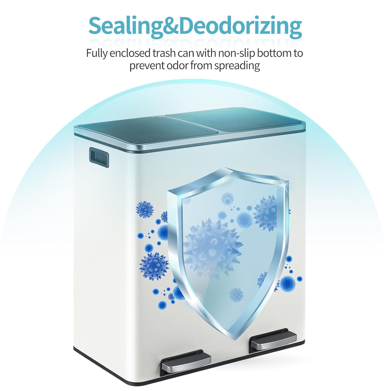 - 2×8-Gallon Compartments: 16-gallon step trash can has two compartments, combining garbage and recycling. Completely separated dual garbage and recycling can also avoid the smell of garbage. 2 removable inner buckets increase convenience