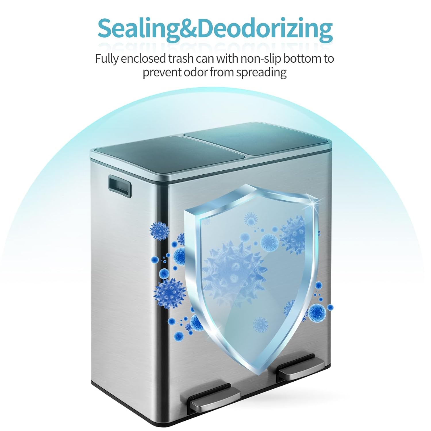 - 2×8-Gallon Compartments: 16-gallon step trash can has two compartments, combining garbage and recycling. Completely separated dual garbage and recycling can also avoid the smell of garbage. 2 removable inner buckets increase convenience