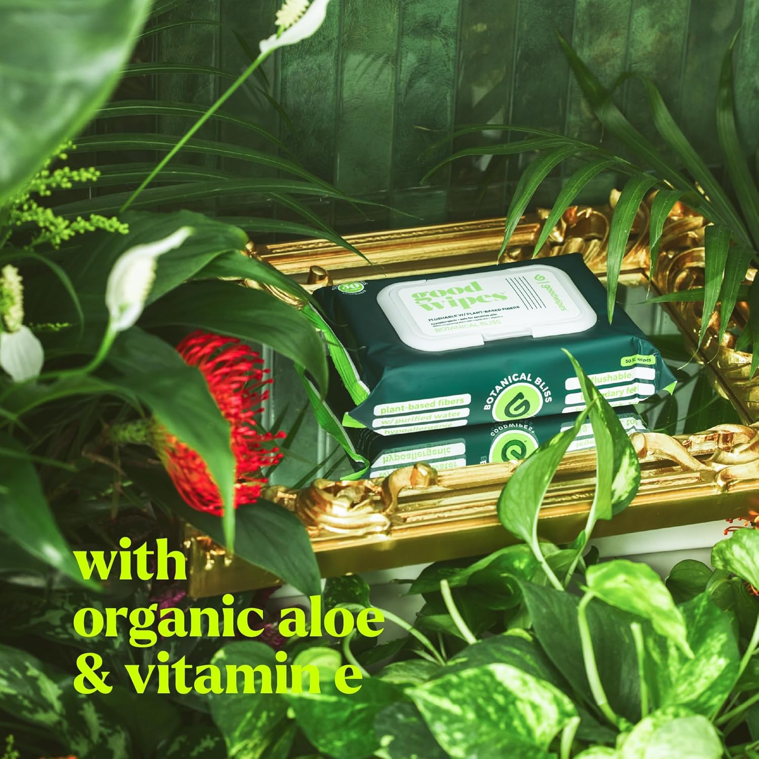 goodwipes Flushable Wipes - Individually Wrapped Butt Wipe for On-the-Go Adults - Portable Mini Wipes - Travel Essentials - Sewer & Septic Safe - Botanical Bliss, 32 Count (1 Pack)