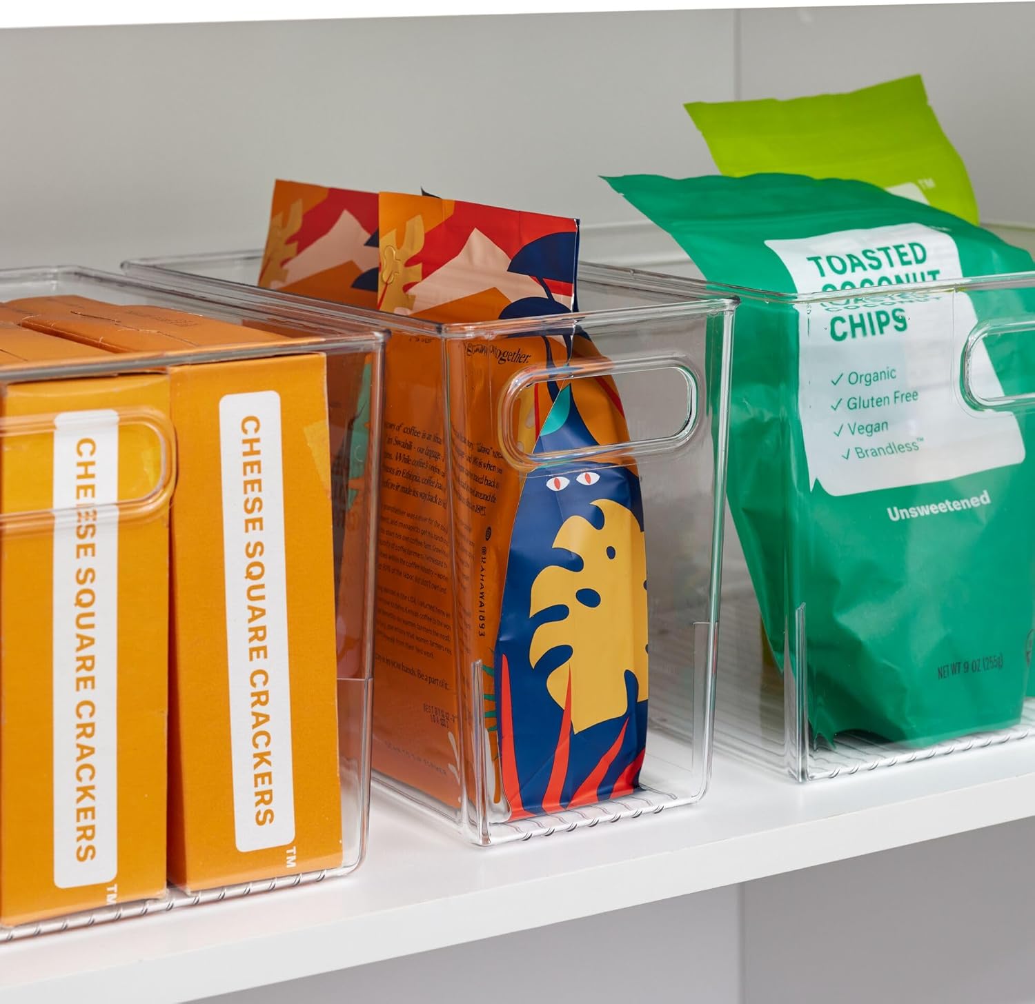 - OPEN DESIGN WITH HANDLES - These grab-and-go bins feature an open-top design that grants immediate reach-in access, so finding what you need is quick and easy; Combine multiple units side by side for custom storage, creating a more thoughtful space for how you live; Finished with integrated handles, these storage bins are easy to transport wherever you need; From cabinets to countertops, keep clutter under control by conveniently storing an assortment of kitchen or pantry essentials