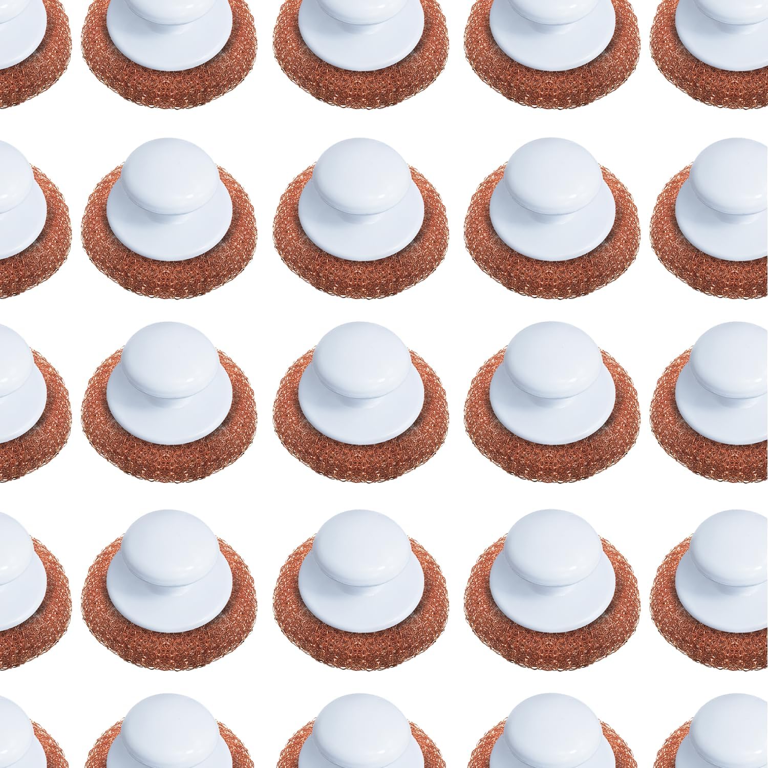 LOLA Copper Mesh Scouring Pad w/Comfort Knob, 144 Pack, Heavy Duty Cleaning Pads, Knitted Wire Mesh, Cleans Caked-On & Baked-On Messes