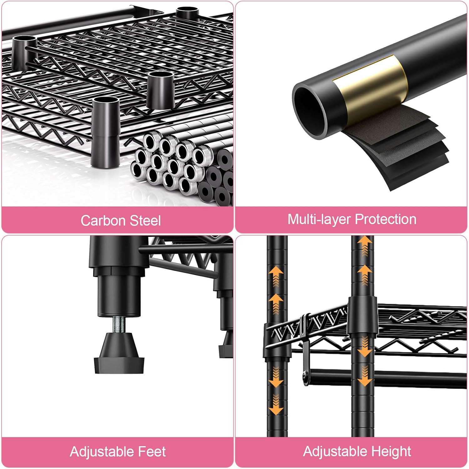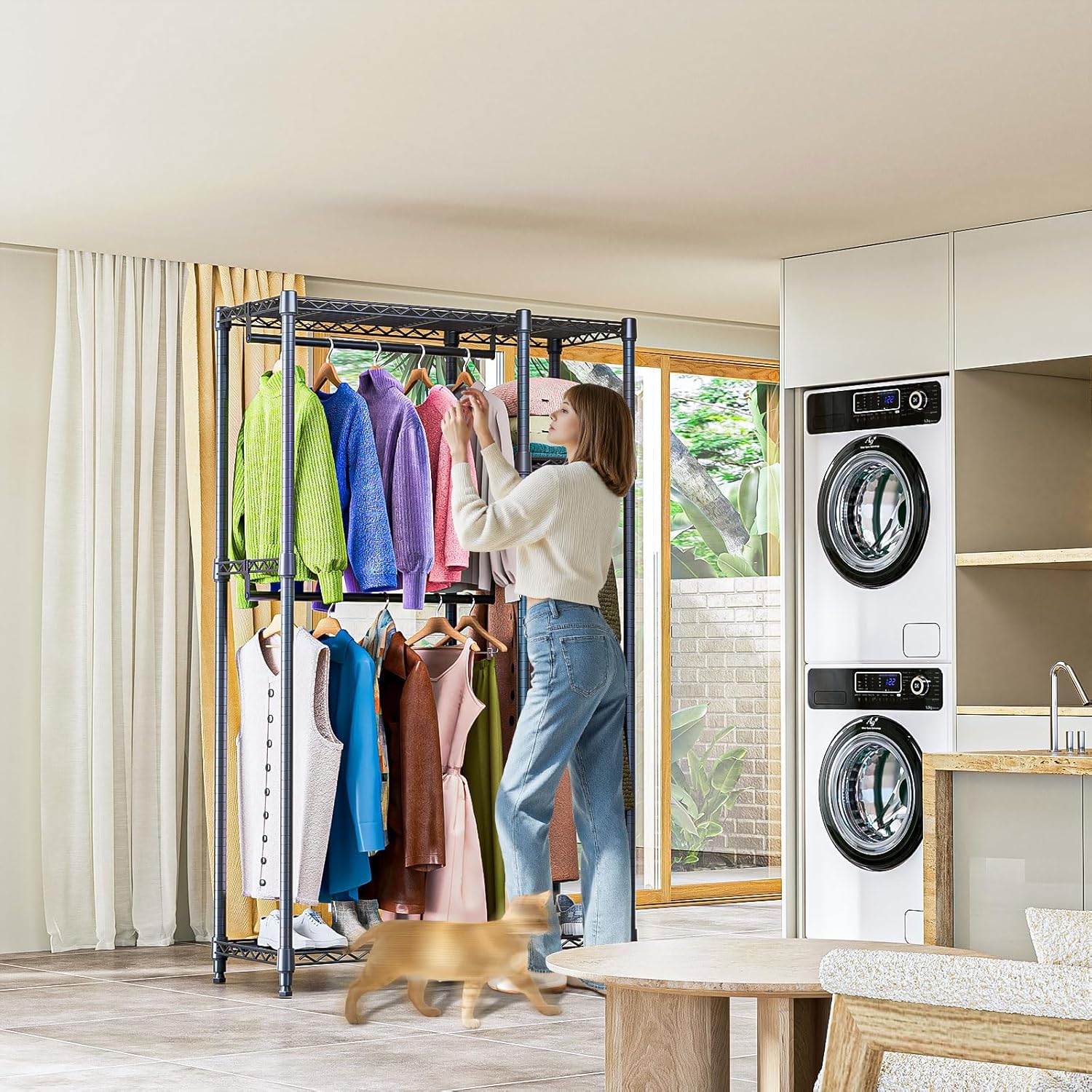 - Premium Carbon Steel Construction : Crafted from high-quality carbon steel with anti-rust materials, this garment rack features sturdy 19.1mm diameter pipes, ensuring exceptional durability and long-lasting strength.