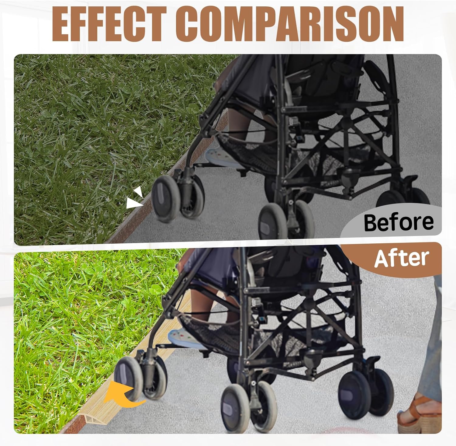 - 【Installation Method】Before installation, please ensure that the installation position is kept clean, dry and flat, as installation on uneven and dusty surfaces will affect the stickiness and use effect of the product. When installing floor transition is too long, just cut it with scissors. After the paste is completed, You can put a weight on it and let it sit for 1 hour to make the product more firmly installed